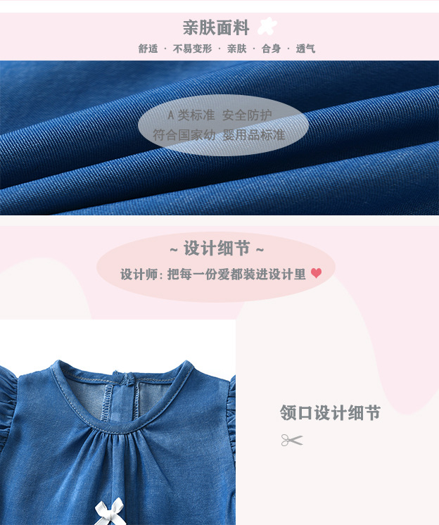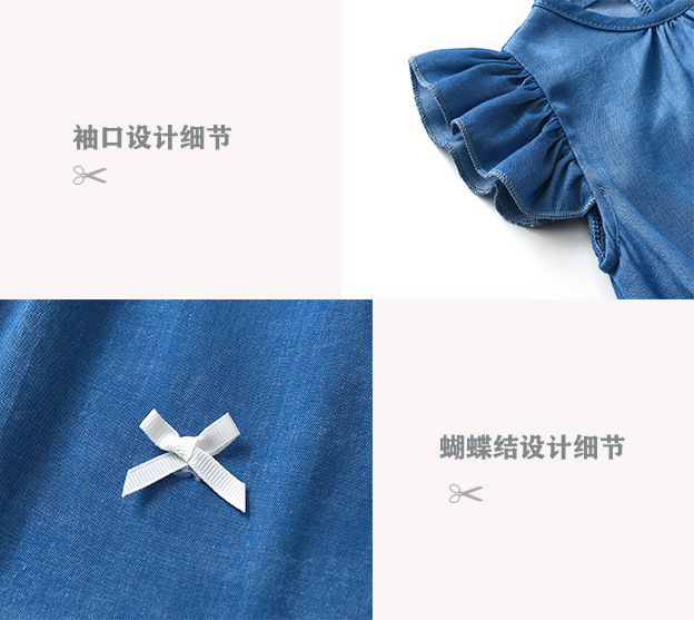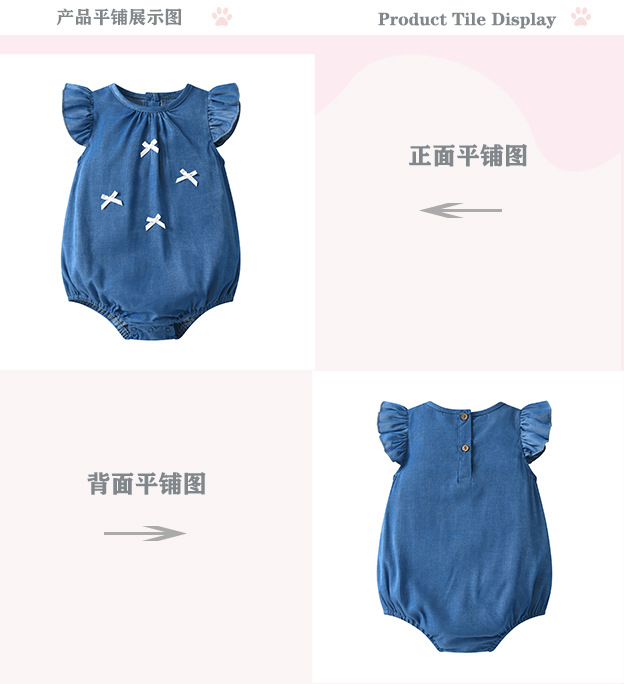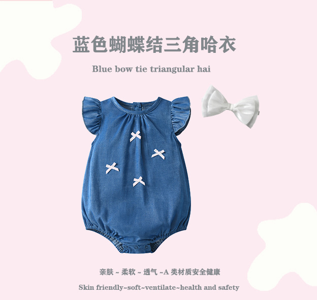 두 조각 세트 여름 신생아 소녀 삼각형 소매 의류 헤어 벨트 데님 공주 여름 대외 무역스토어 가기