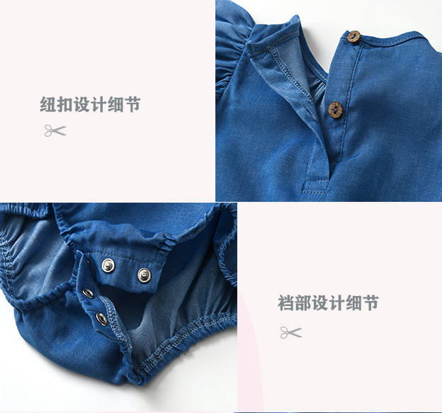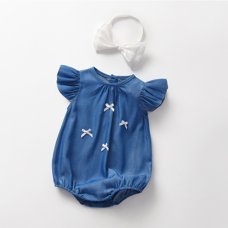 두 조각 세트 여름 신생아 소녀 삼각형 소매 의류 헤어 벨트 데님 공주 여름 대외 무역