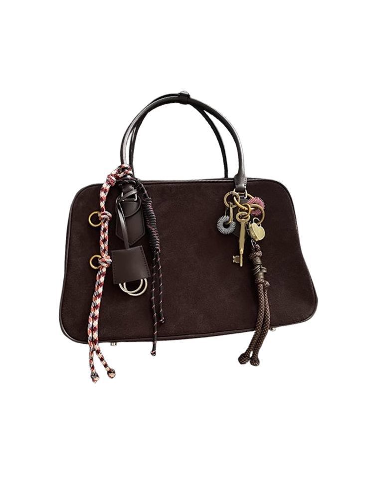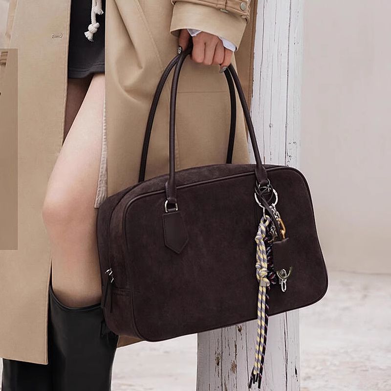 대용량 다크 브라운 보스턴 가방 여성 가방 2025 폭발성 어깨 휴대용 볼링 가방 핸드백