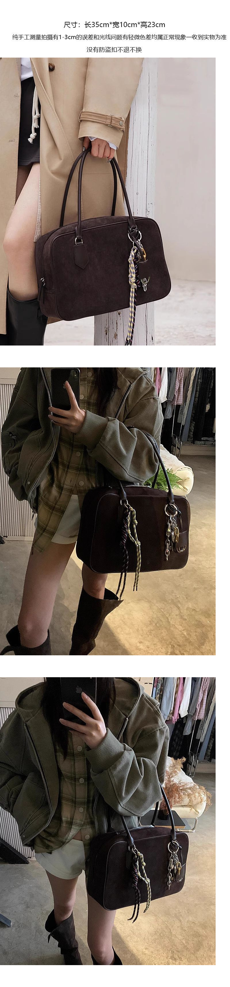 대용량 다크 브라운 보스턴 가방 여성 가방 2025 폭발성 어깨 휴대용 볼링 가방 핸드백스토어 가기