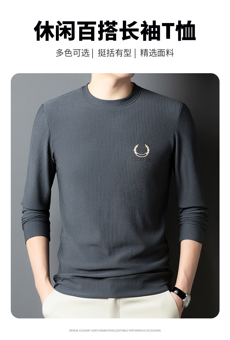 봄과 가을 남성용 긴 소매 티셔츠 니트 셔츠 라운드 넥 캐주얼 스웨터 국경 대외 무역 고급 남성용 중년베이스 셔츠스토어 가기