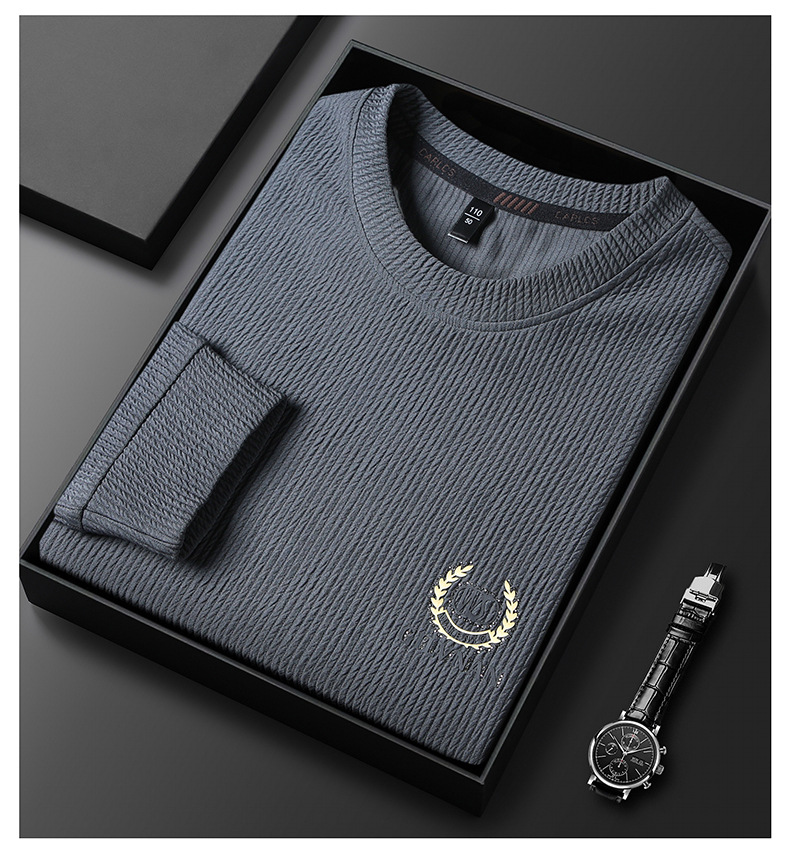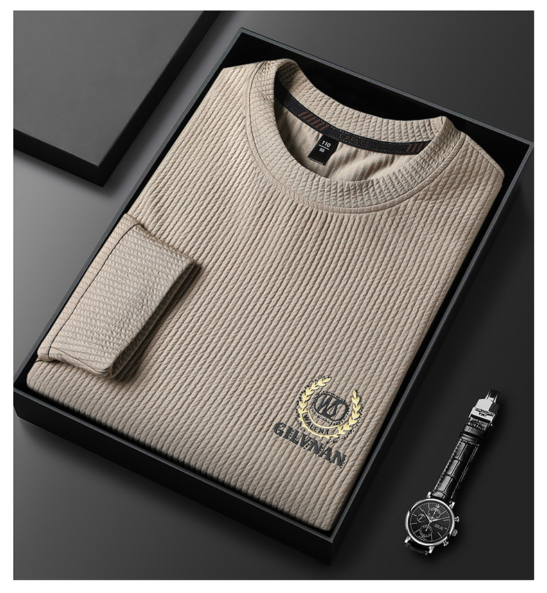 봄과 가을 남성용 긴 소매 티셔츠 니트 셔츠 라운드 넥 캐주얼 스웨터 국경 대외 무역 고급 남성용 중년베이스 셔츠