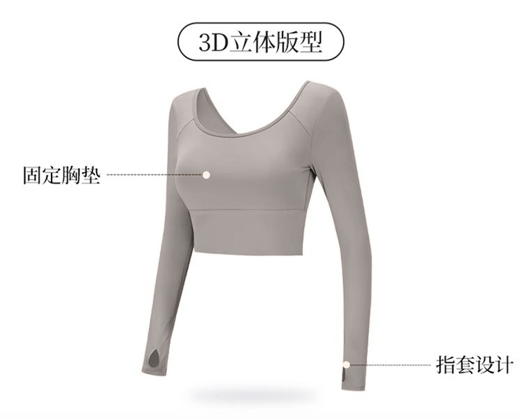 가슴 패드가 있는 요가복, 봄, 가을 긴팔 크로스오버, 아름다운 등, 슬리밍 스포츠 긴팔 피트니스복, 여성용 슬림 핏 및 푸쉬업스토어 가기