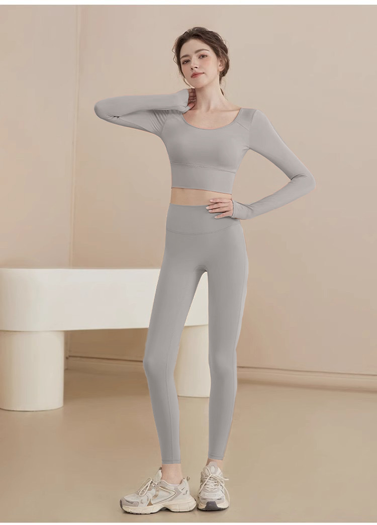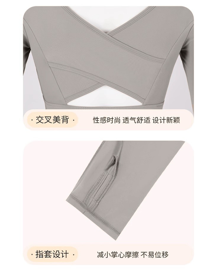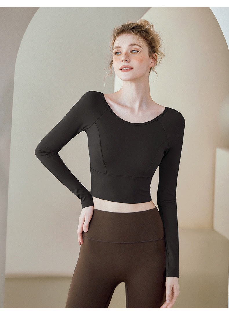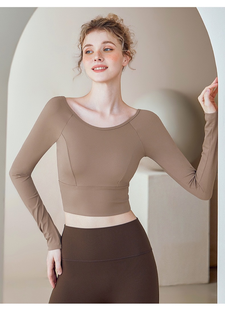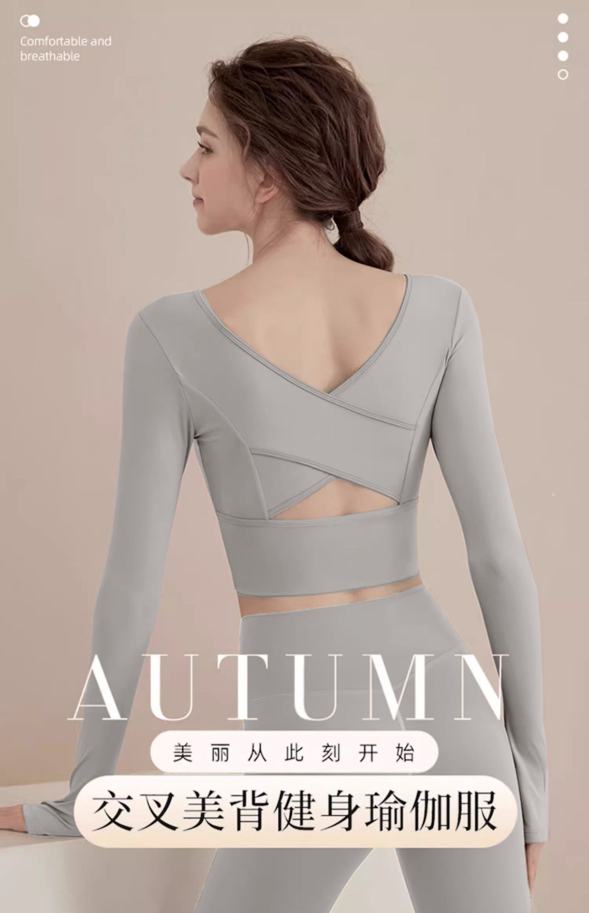 가슴 패드가 있는 요가복, 봄, 가을 긴팔 크로스오버, 아름다운 등, 슬리밍 스포츠 긴팔 피트니스복, 여성용 슬림 핏 및 푸쉬업