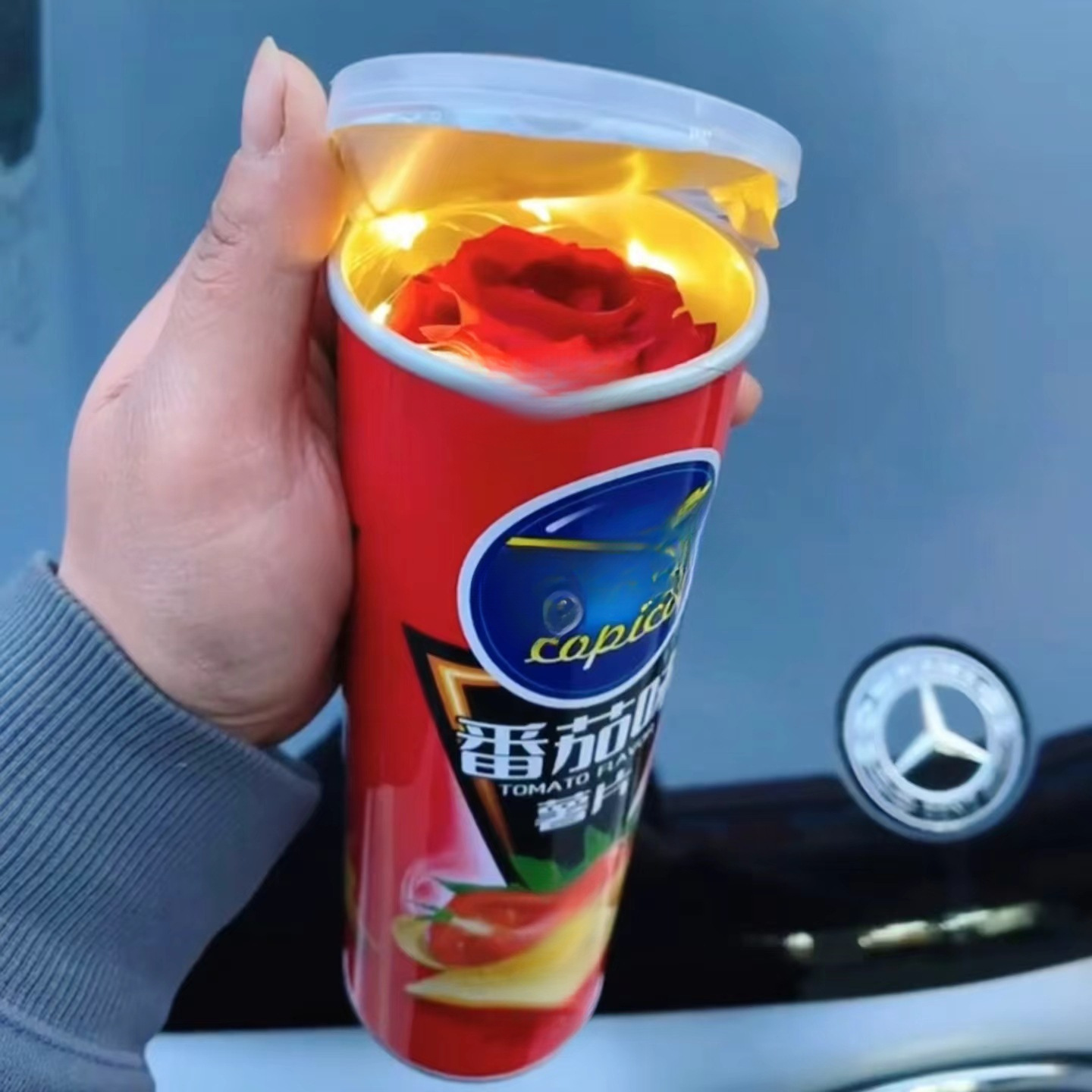 • 감자칩 통 + 빨간 장미
