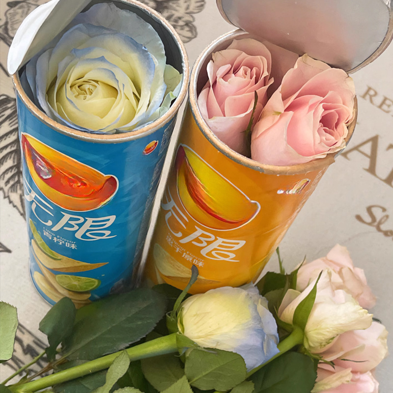 • 감자칩 통 + 핑크색과 파란색 장미