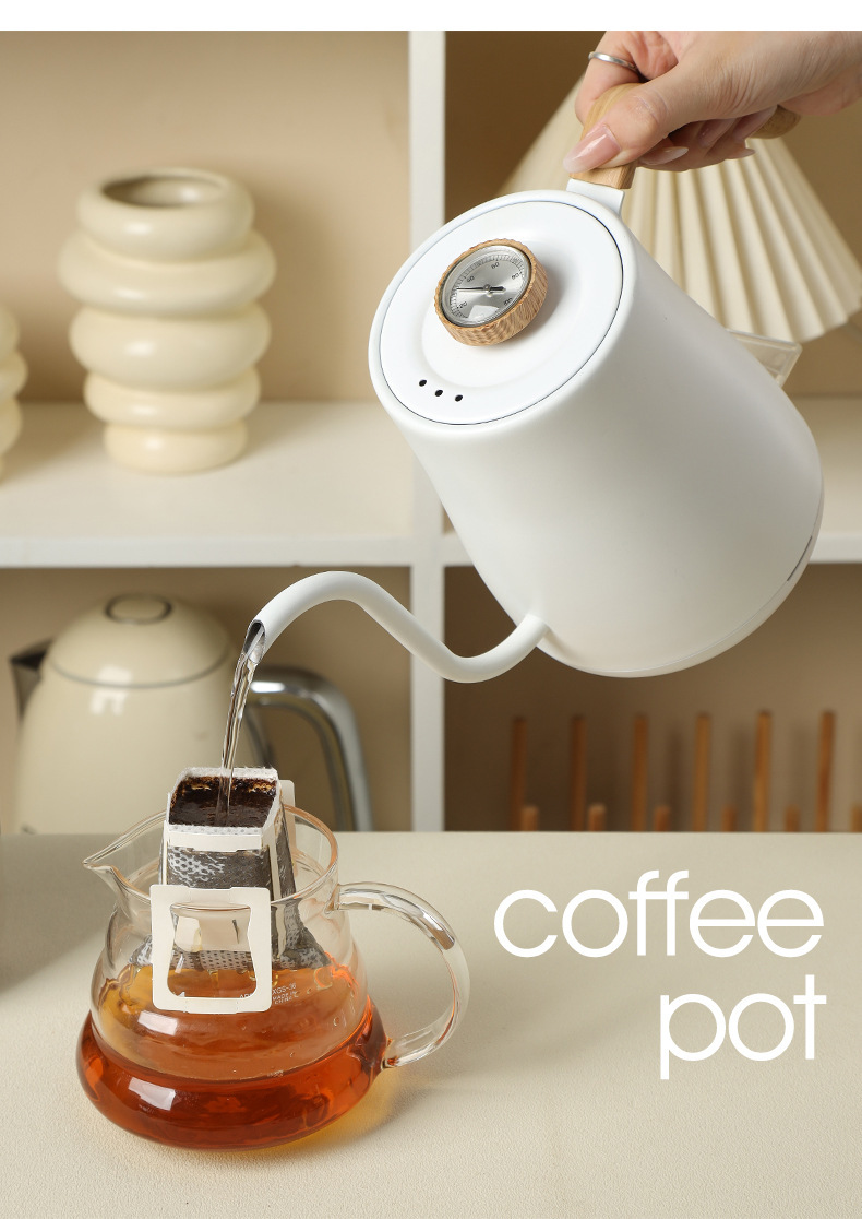 유럽 게이지 날씬한 입 스테인레스 스틸 지능형 온도 제어 손 양조 주전자 주전자 고급 구스넥 커피 포트 호텔 주전자스토어 가기