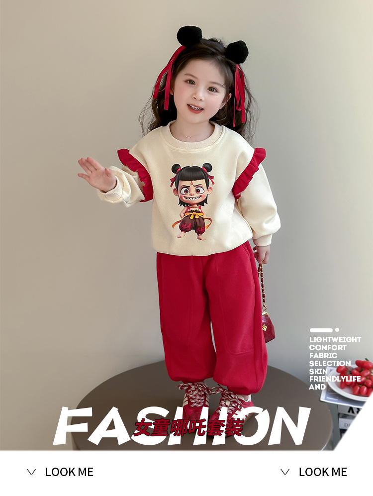 소녀의 봄 원피스 2025 새로운 스타일 외국 스타일 아기 소녀 세트 인터넷 연예인 튀김 거리 Ao C 어린이 봄 투피스 세트