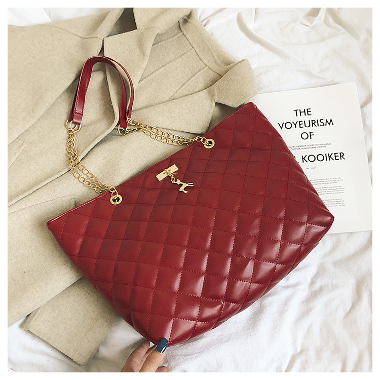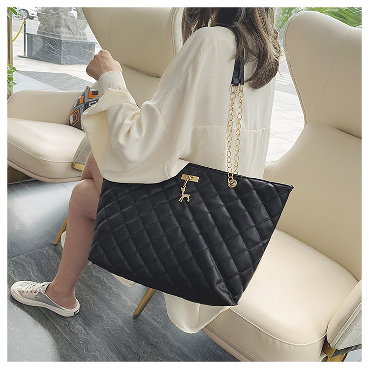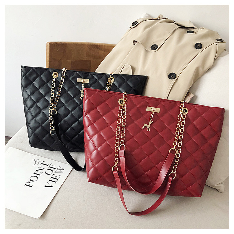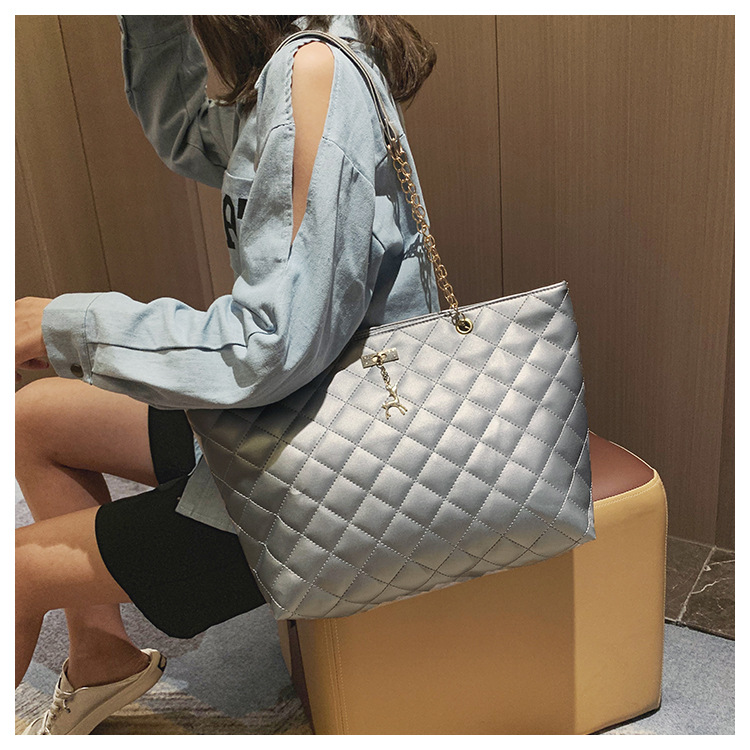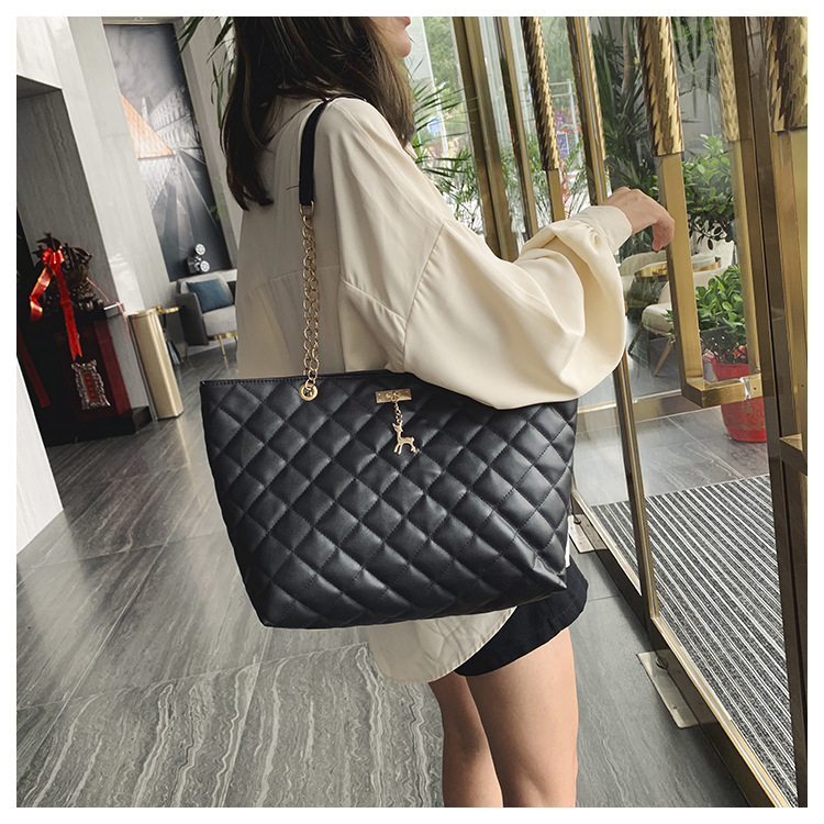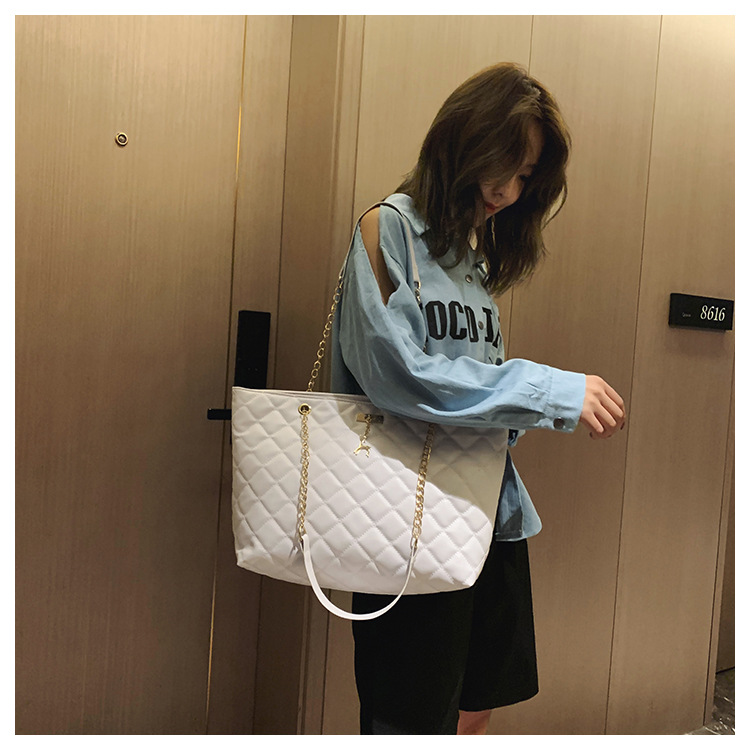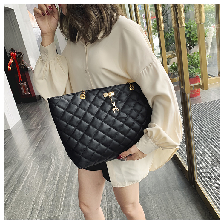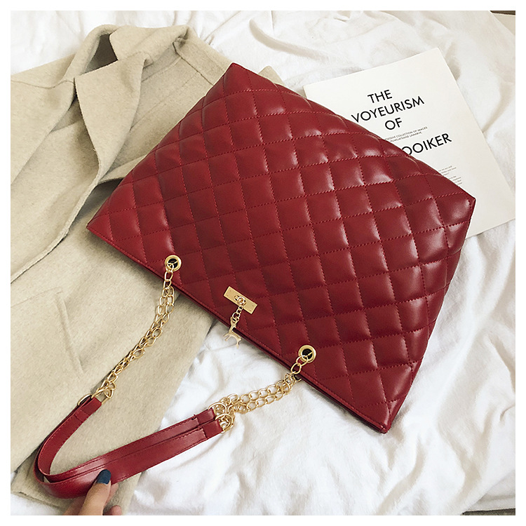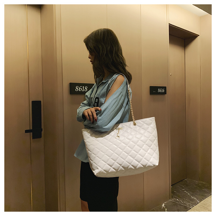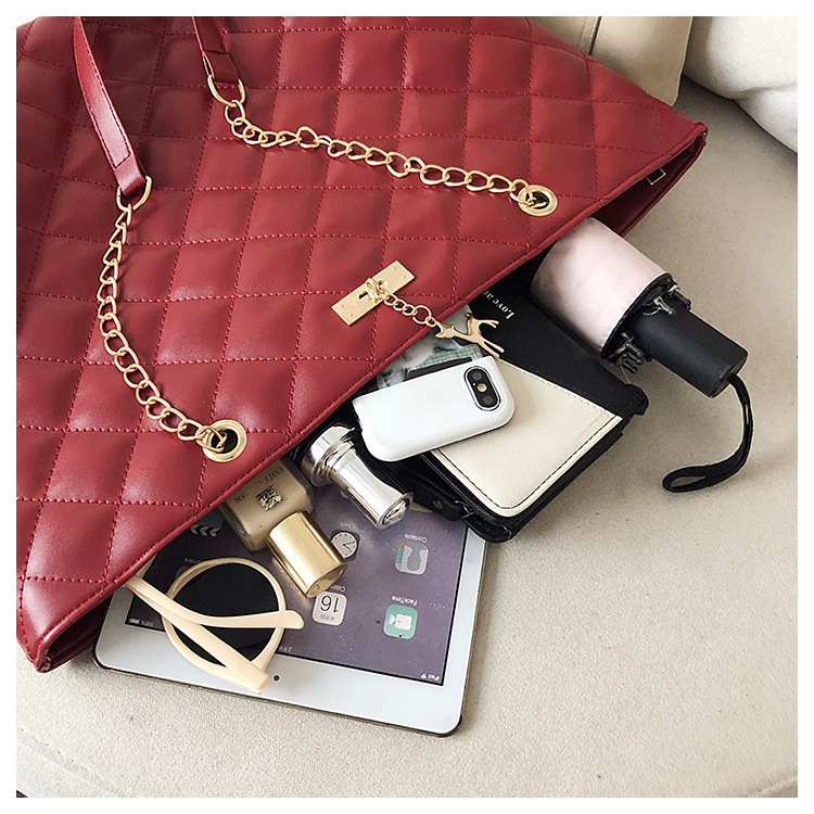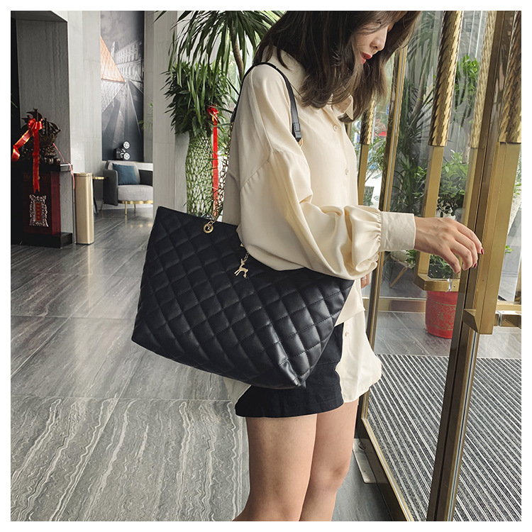새로운 2025 유행 여성 빅 백 마름모꼴 자수 라인 잠금 체인 여성 가방 핸드백 어깨 크로스 바디 백 여성용 가방