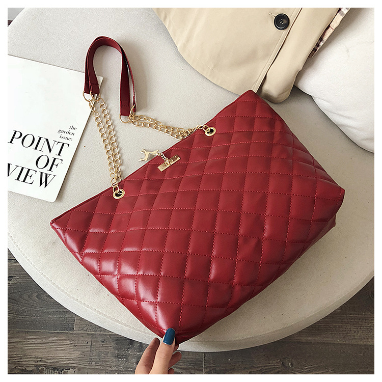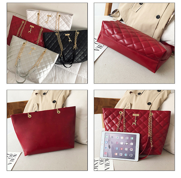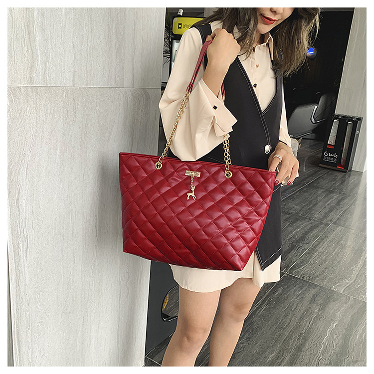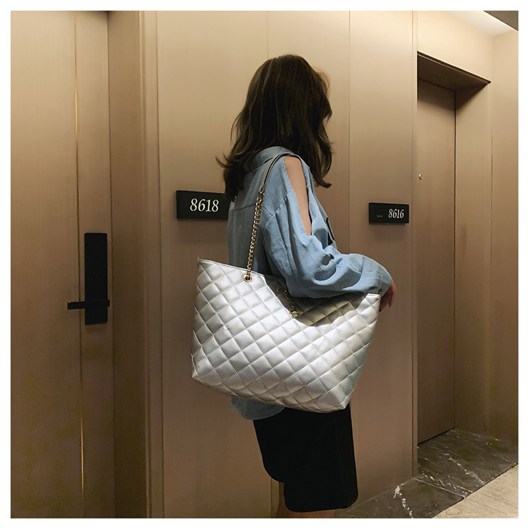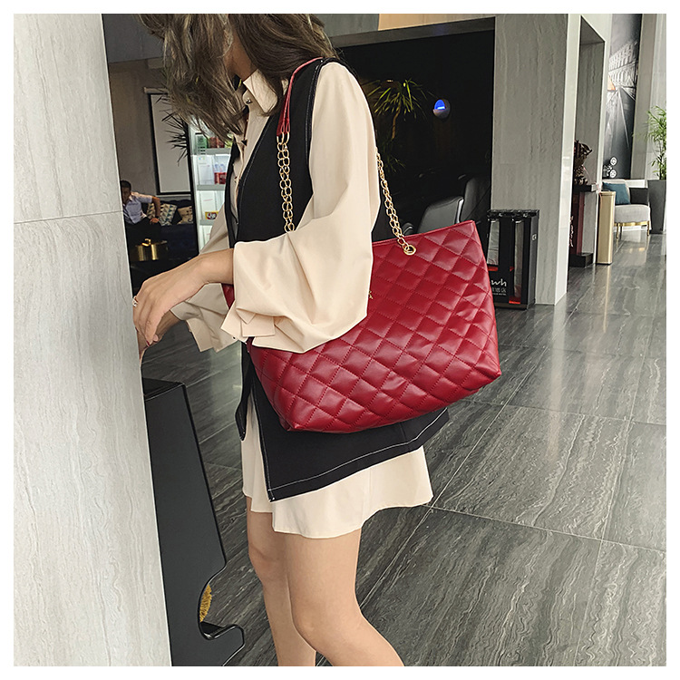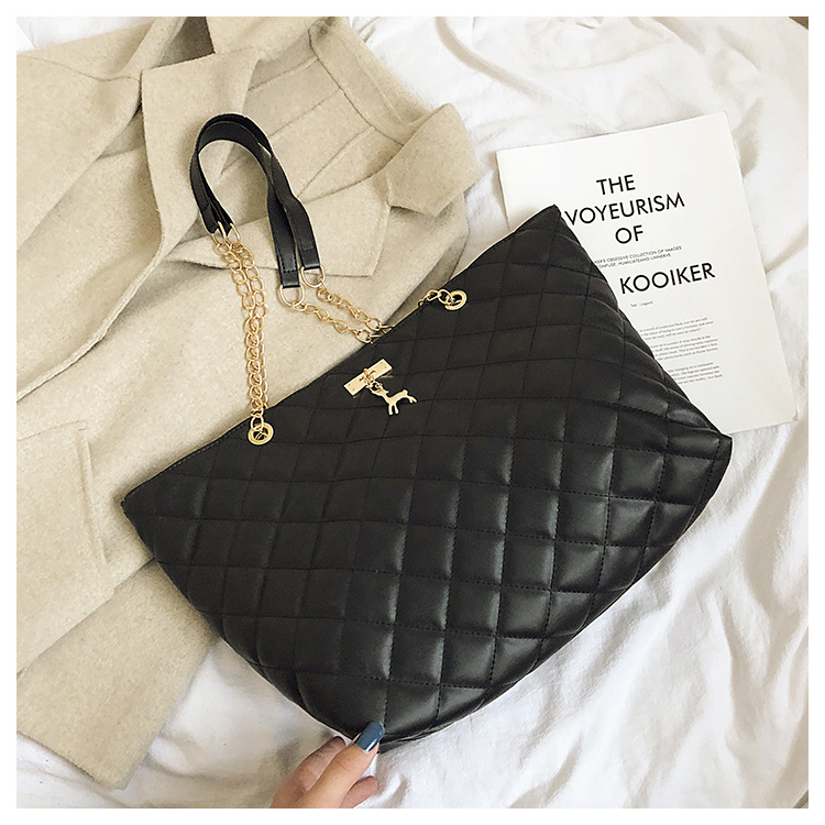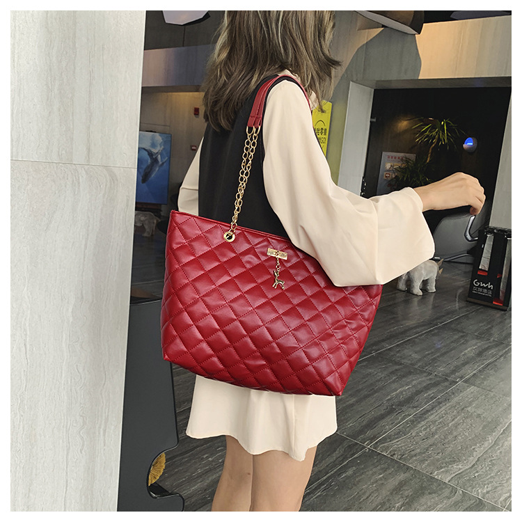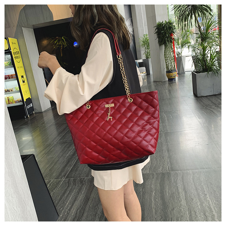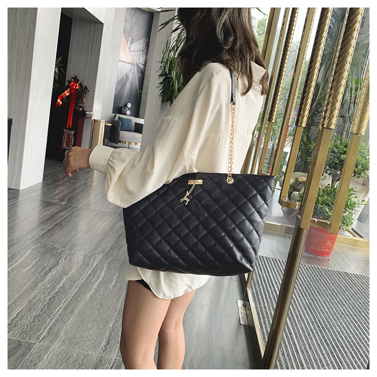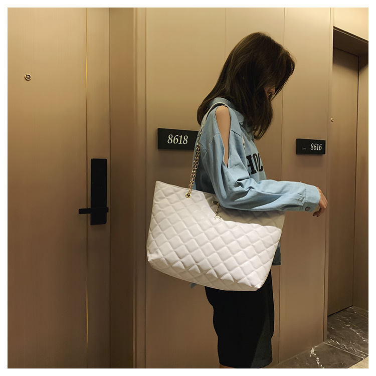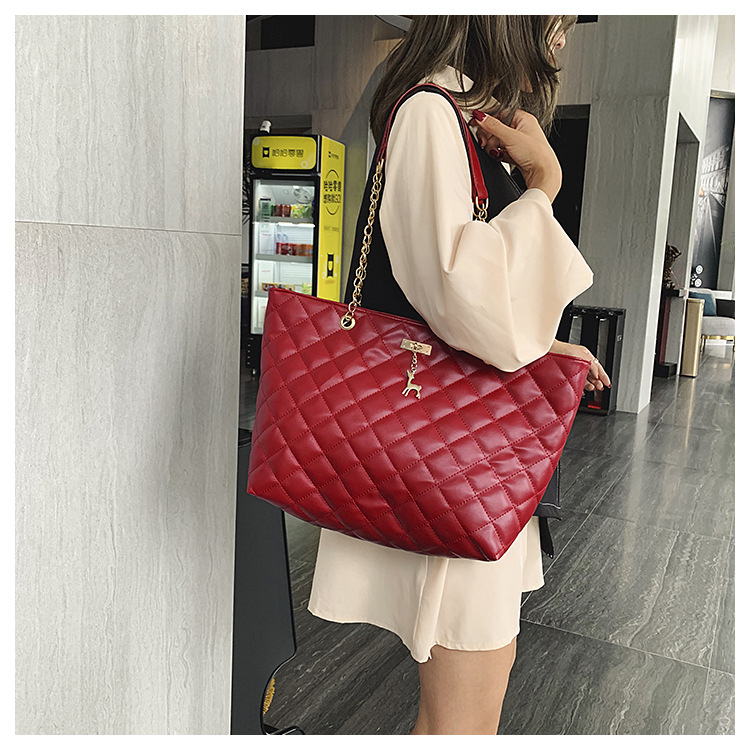 새로운 2025 유행 여성 빅 백 마름모꼴 자수 라인 잠금 체인 여성 가방 핸드백 어깨 크로스 바디 백 여성용 가방