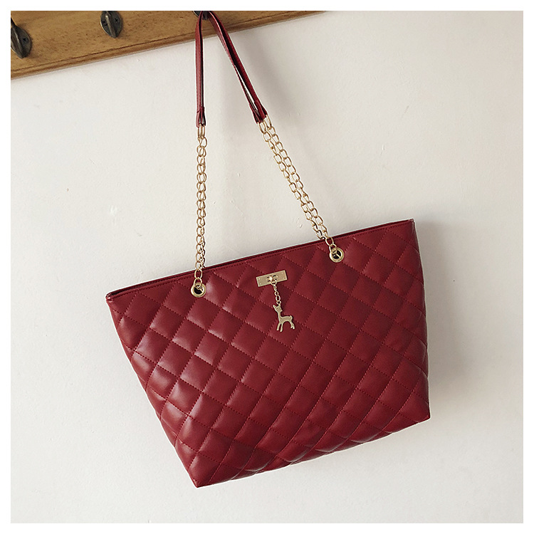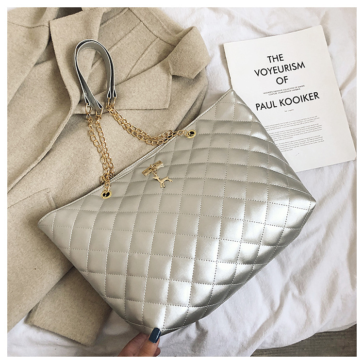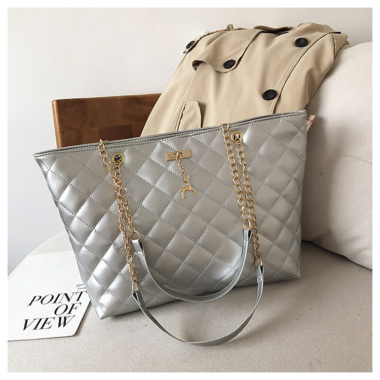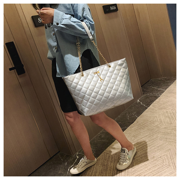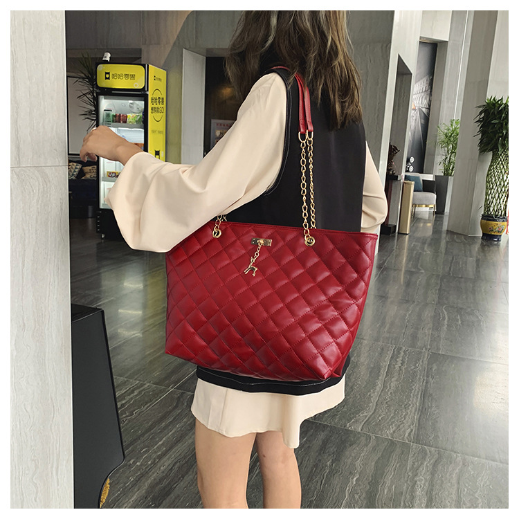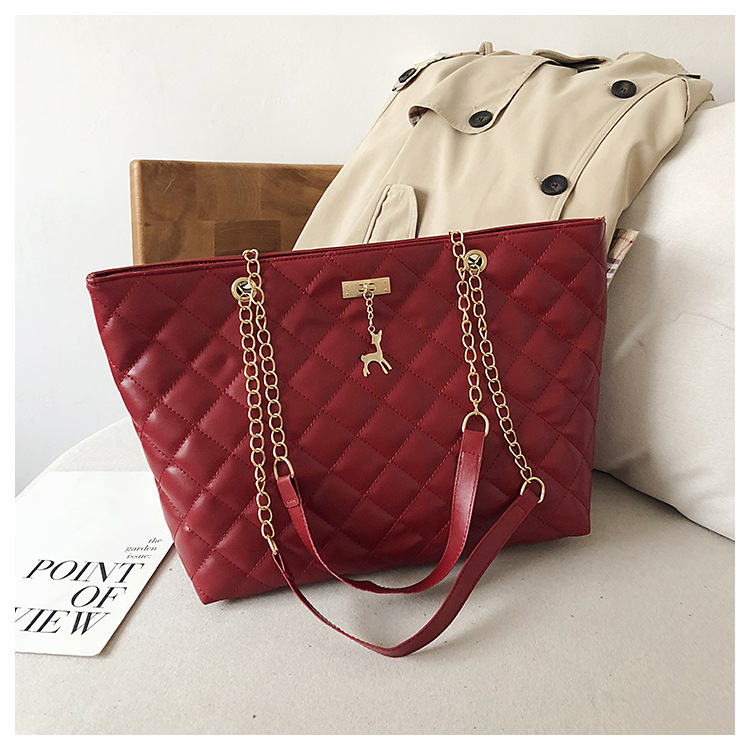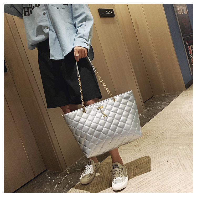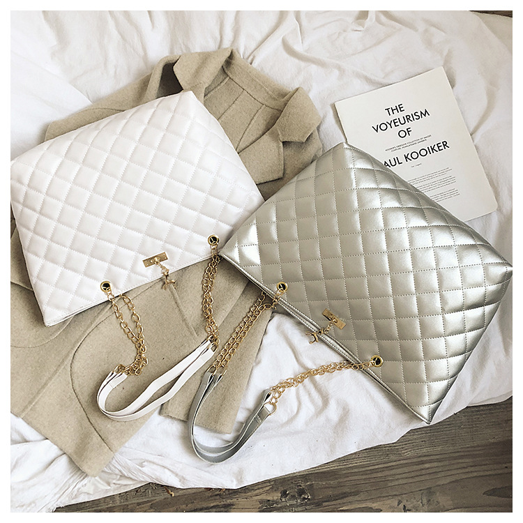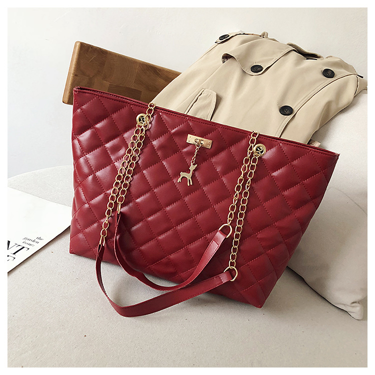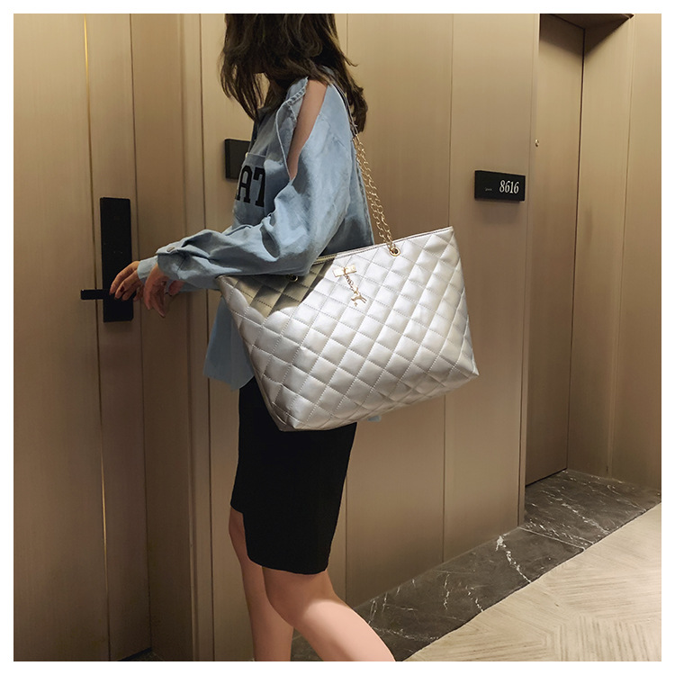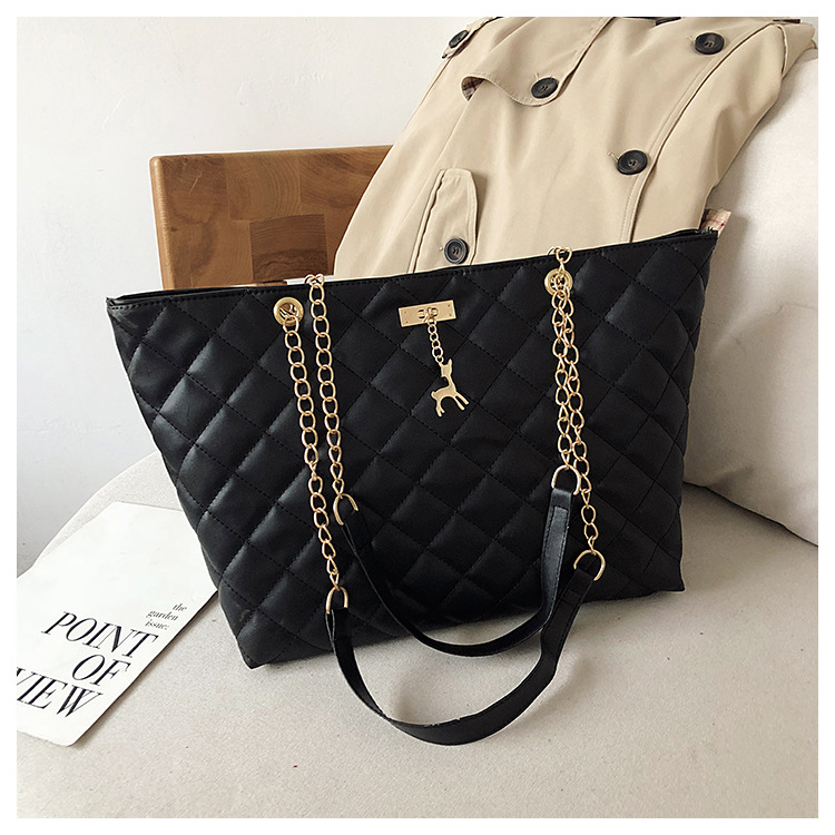 새로운 2025 유행 여성 빅 백 마름모꼴 자수 라인 잠금 체인 여성 가방 핸드백 어깨 크로스 바디 백 여성용 가방