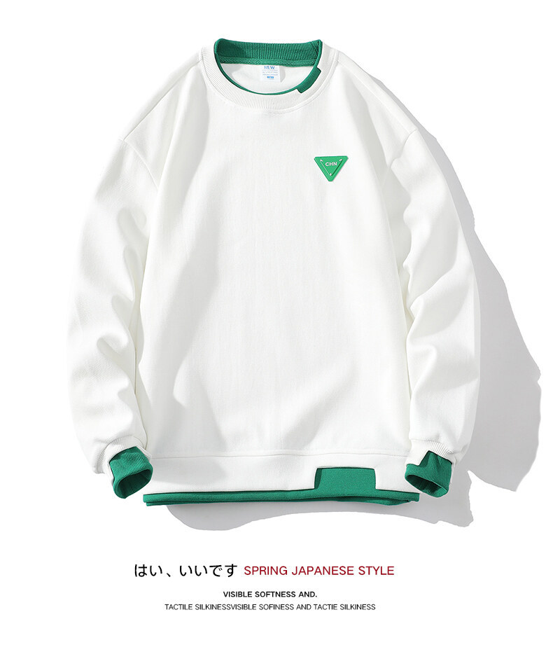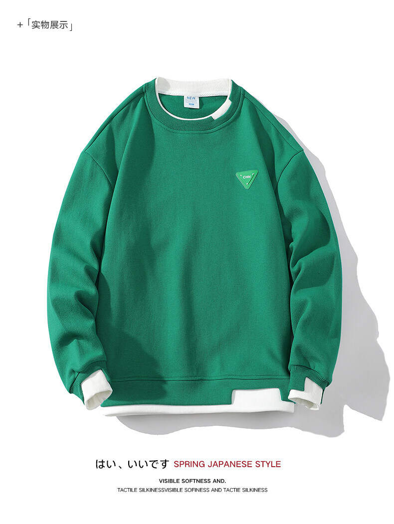 NASA 합동 봄과 가을 스웨터 남자의 트렌디 한 브랜드 가짜 투피스 캐주얼 간단한 십대 긴팔 탑베이스 셔츠
