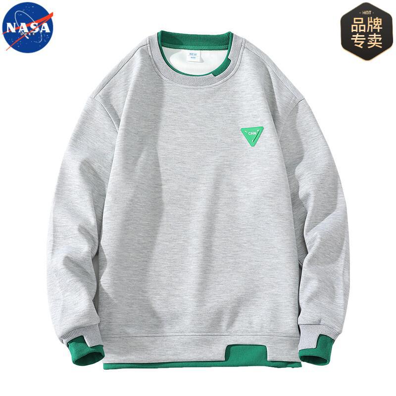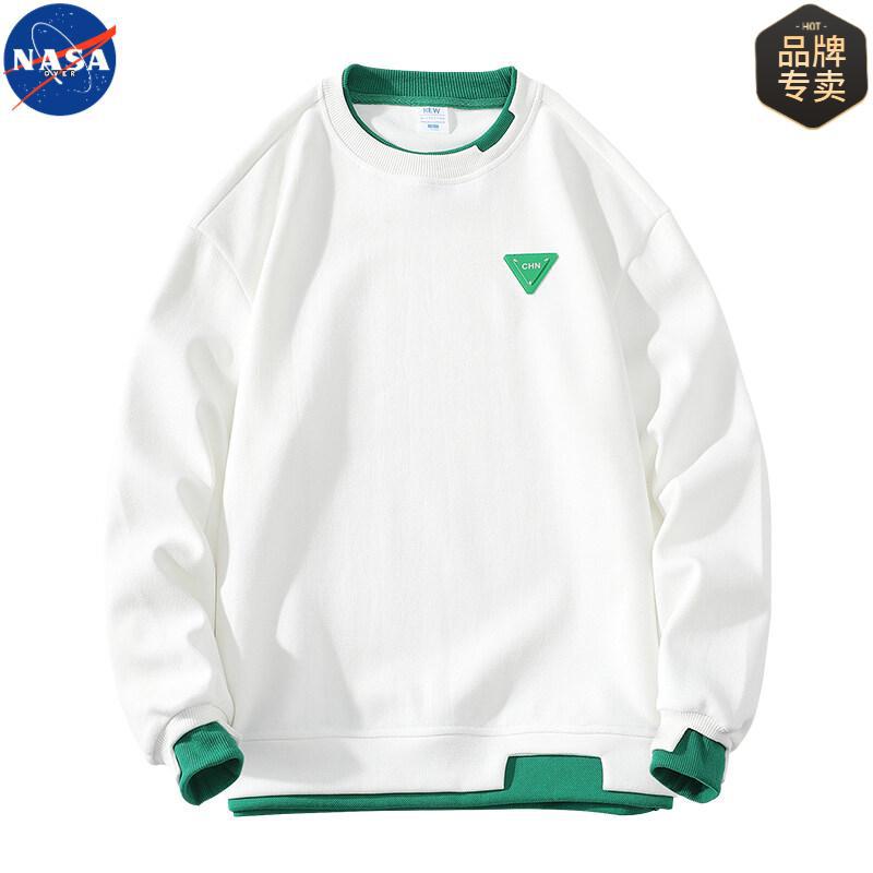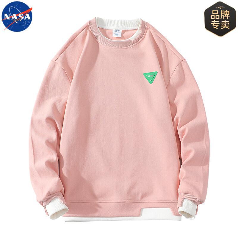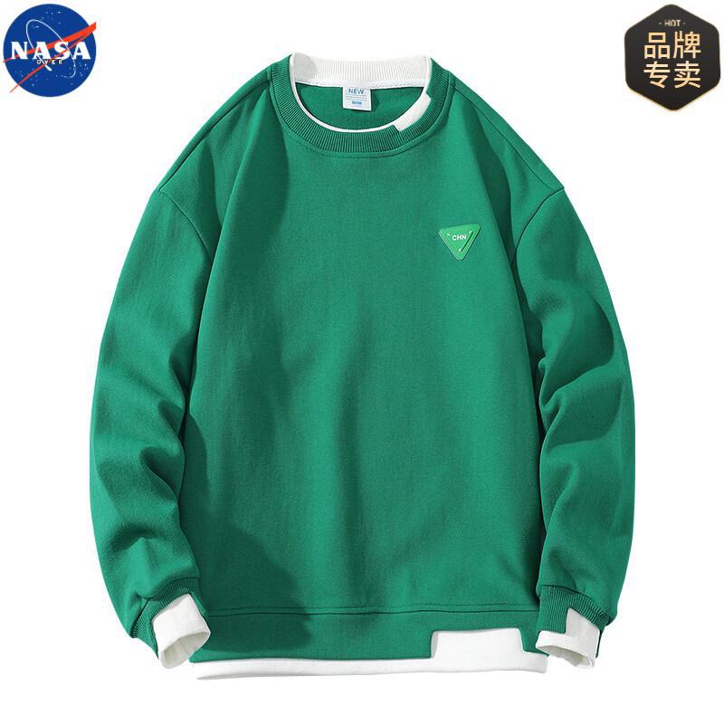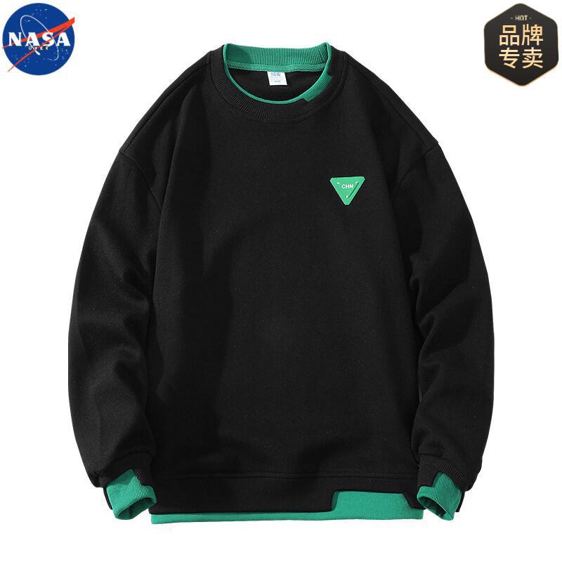 NASA 합동 봄과 가을 스웨터 남자의 트렌디 한 브랜드 가짜 투피스 캐주얼 간단한 십대 긴팔 탑베이스 셔츠스토어 가기