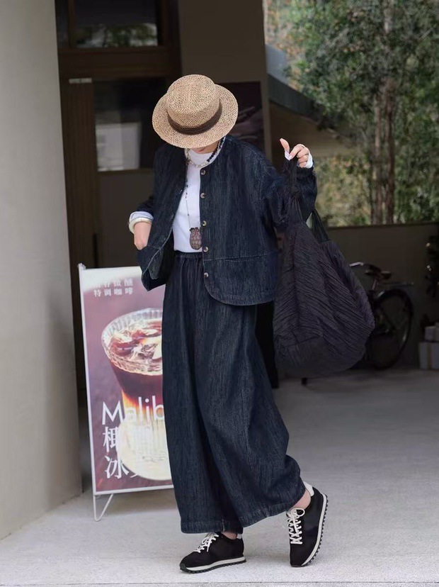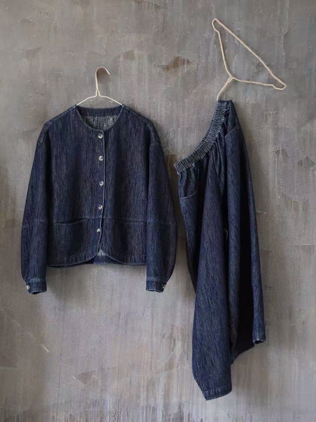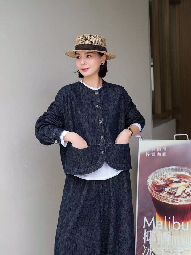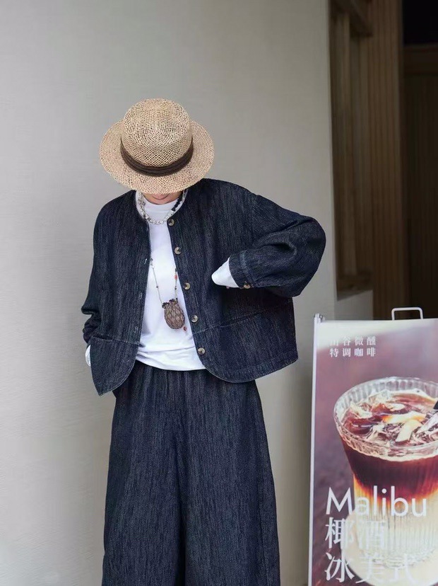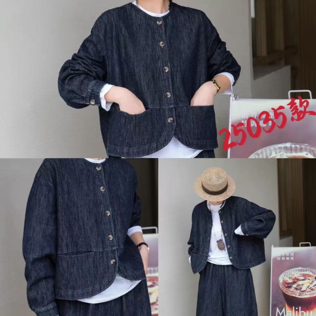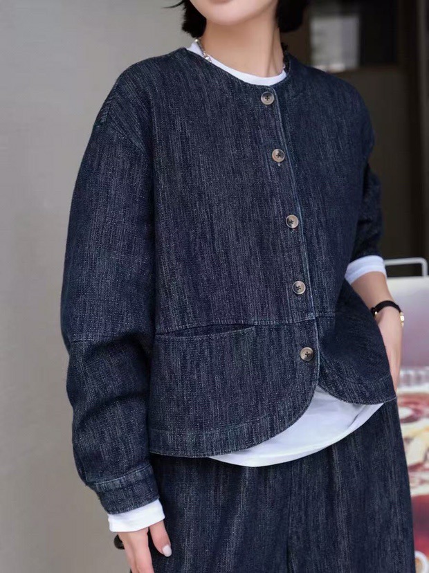 빈티지 라운드 넥 긴 소매 데님 재킷 여성 봄과 가을 2025 새로운 한국 스타일 작은 재킷 탑스토어 가기