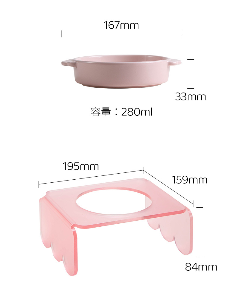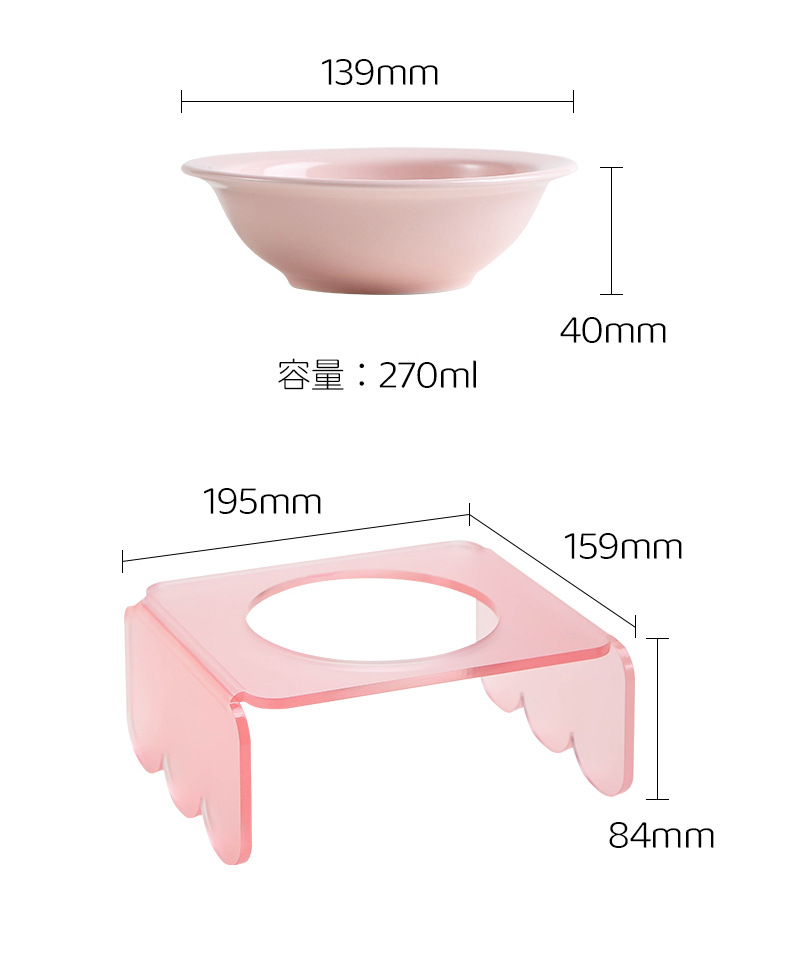 • 핑크색 비행 접시 그릇 - 머리가 기울어진 고양이