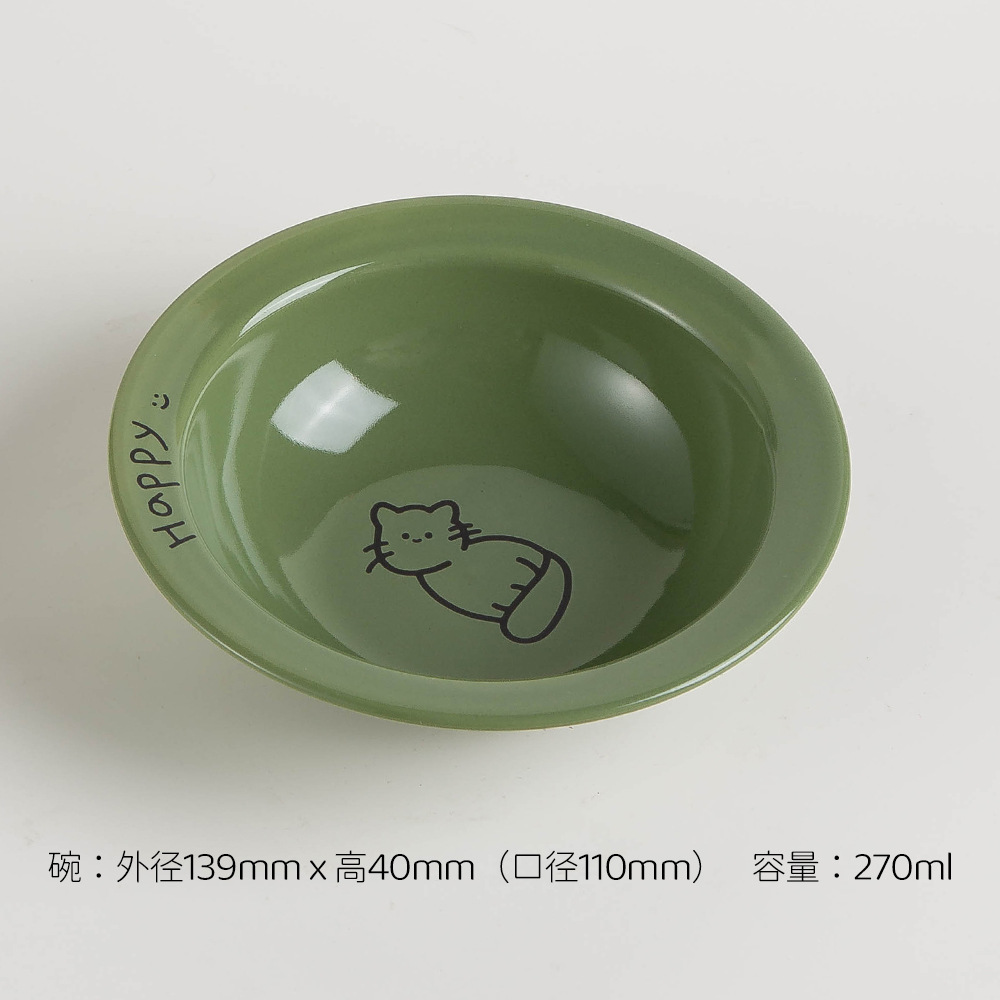 • 잔디 녹색 비행 접시 그릇 - 비뚤어진 고양이