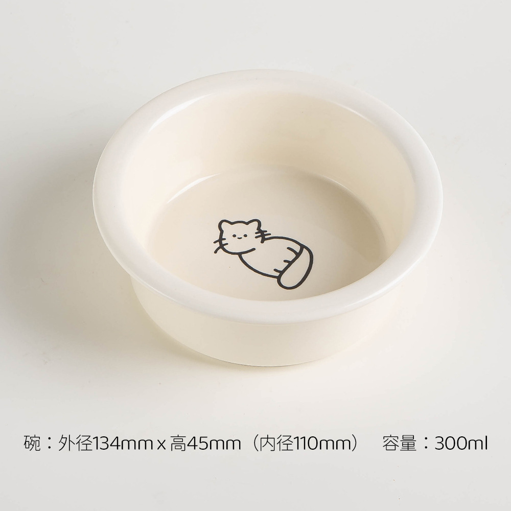 • 황백색 가장자리 그릇 - 비뚤어진 고양이
