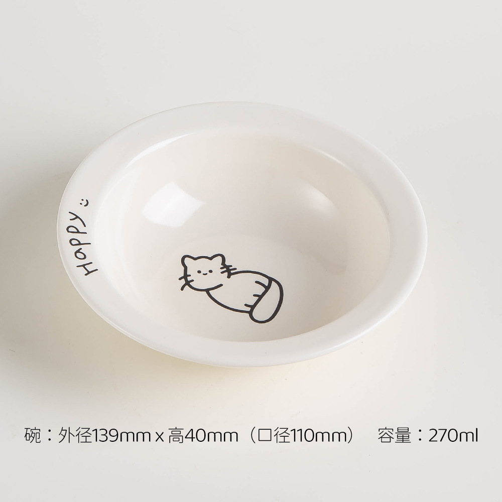 • 미색 비행 접시 그릇 - 비뚤어진 고양이