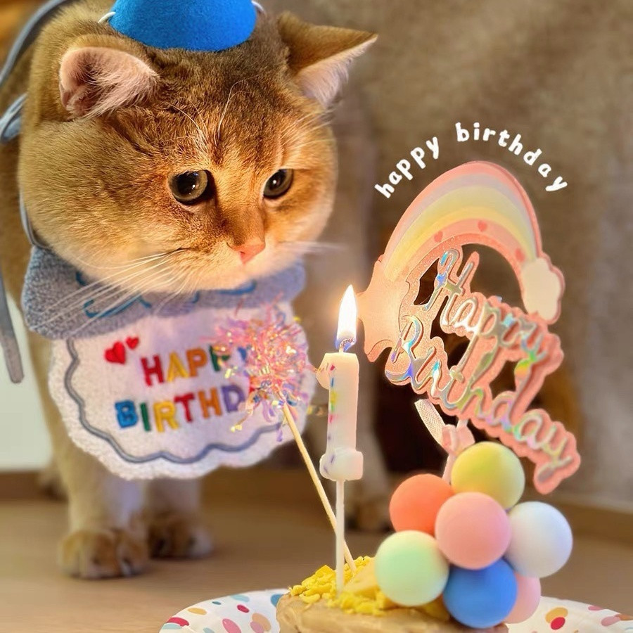 애완 동물 고양이 개 생일 파티 턱받이 모자 애완 동물 케이크 장식 사진 세트 도매스토어 가기