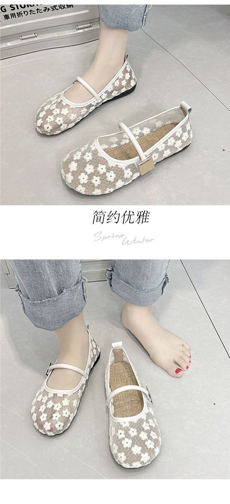 활 플랫 얕은 입 싱글 레이어 신발 여성 무당 신발 2025 새로운 여름 메쉬 통기성 신발 오래 된 베이징 천 신발스토어 가기