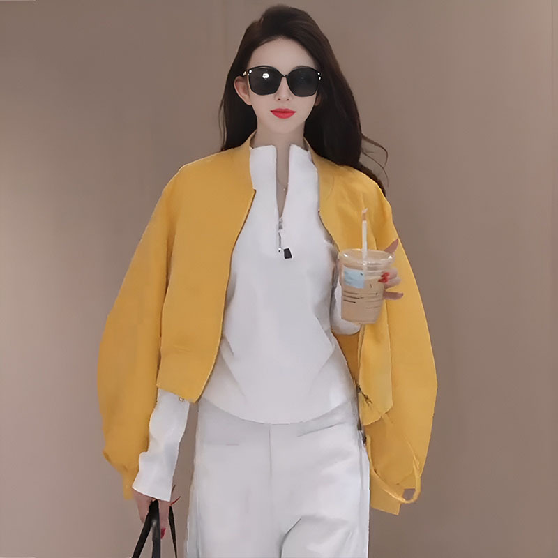 공식 사진 여성용 짧은 코트 여성 봄, 가을 2025 지퍼 탑 노란색 캐주얼 야구 재킷