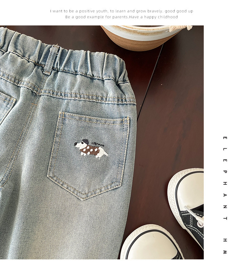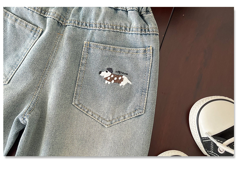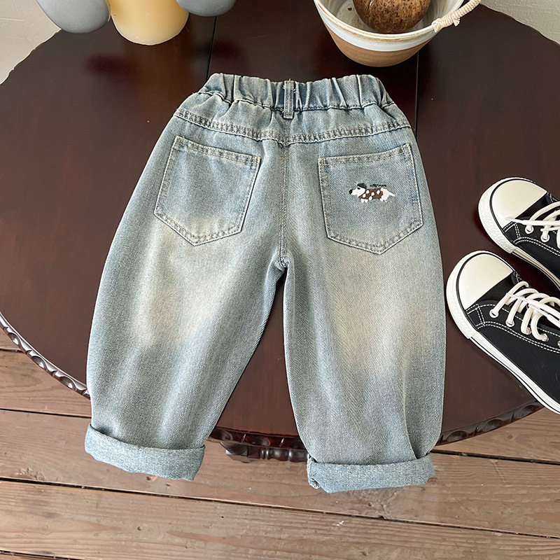 소년의 봄 청바지 2025 새로운 소녀의 만화 자수 바지 중소 어린이 아기의 서양식 올 매치 바지스토어 가기