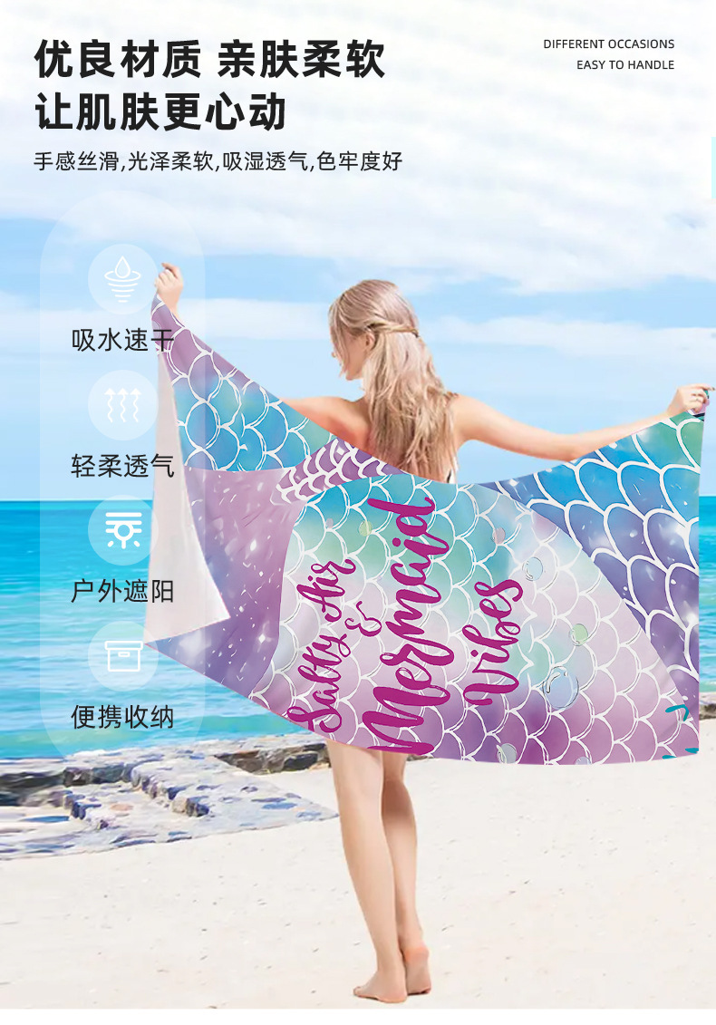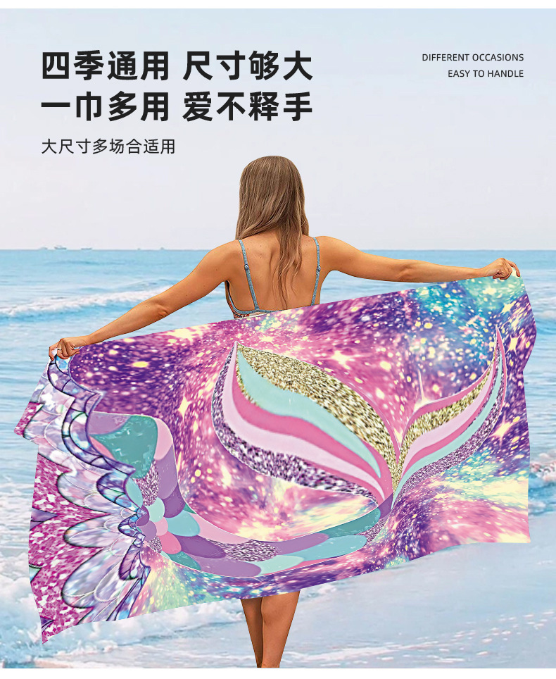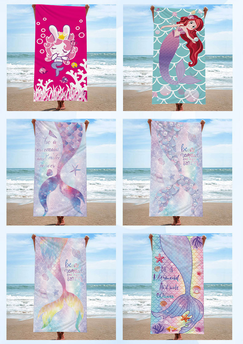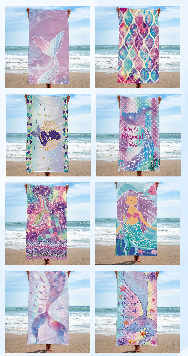 아마존 소원 인어 프린트 비치 타월 목도리 마이크로 파이버 인 패턴 흡수성 빠른 건조 수영 타월