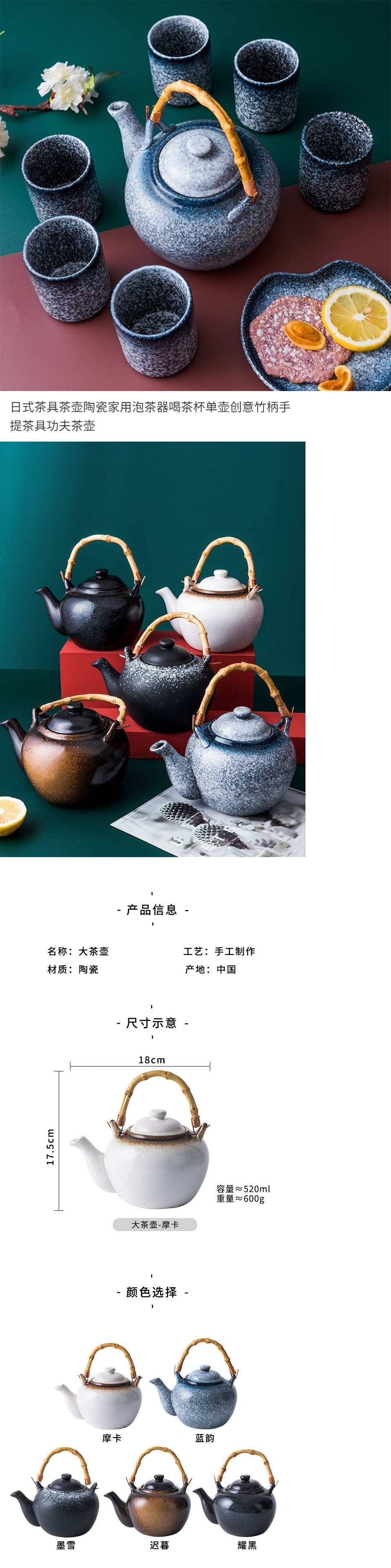 일본식 주전자 레스토랑 대나무 손잡이 휴대용 컵 세트 세라믹 빈티지 리프팅 빔 주전자 단일 냄비 주전자스토어 가기