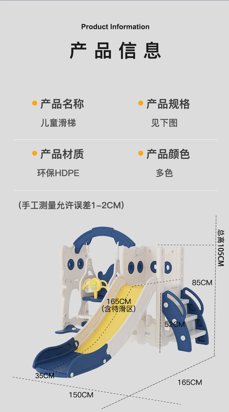 • 확장된 파란색과 노란색 선박 플라스틱 스윙 기본 모델