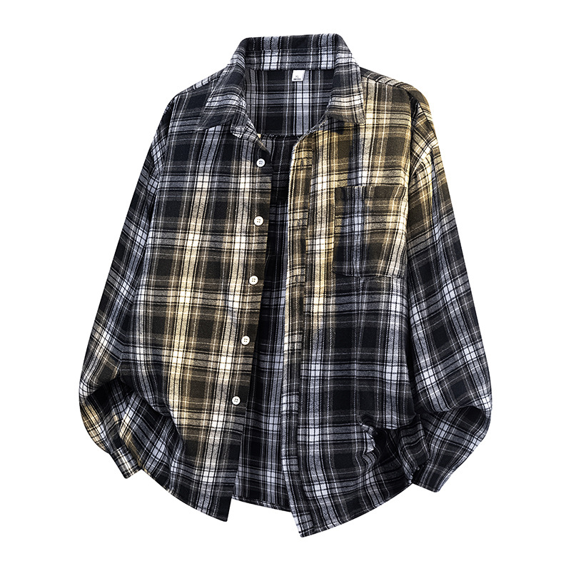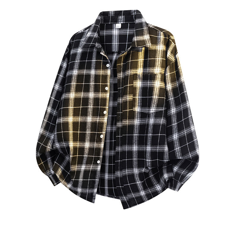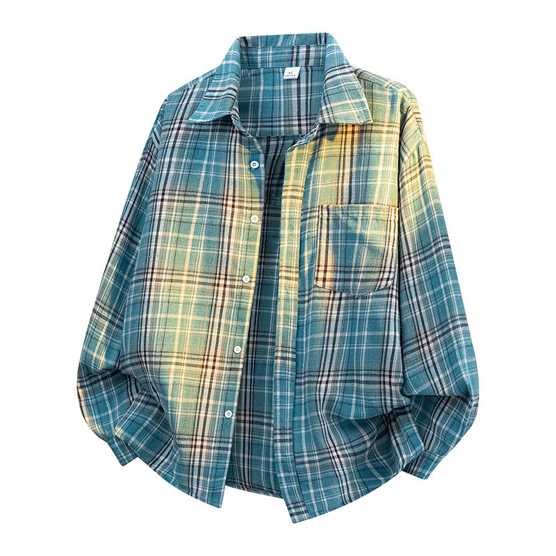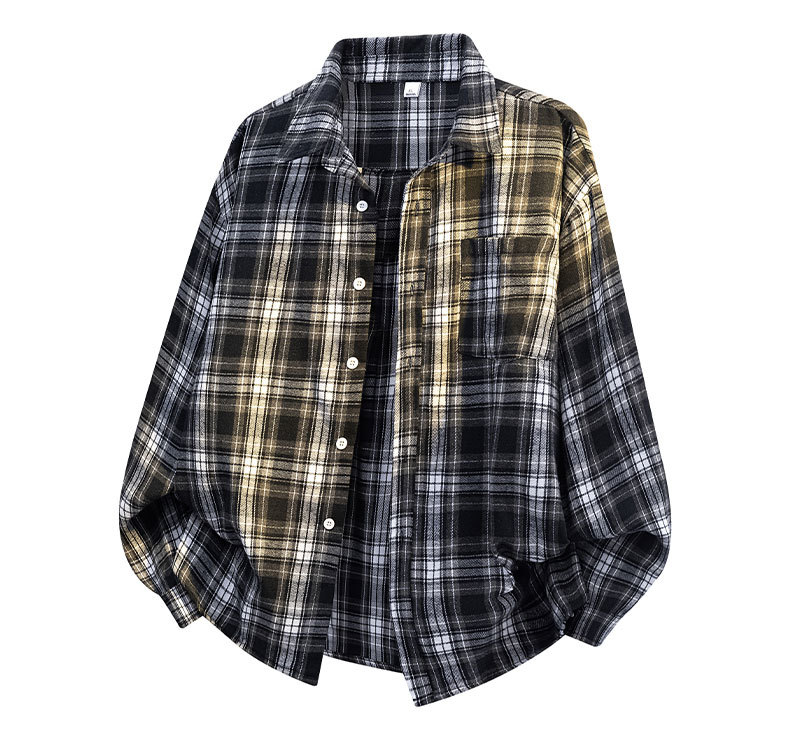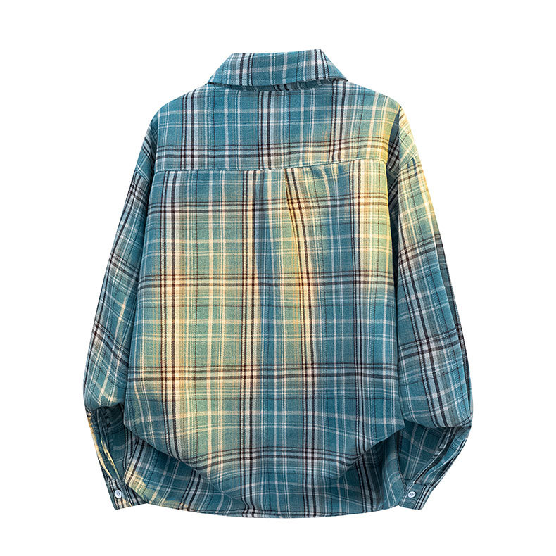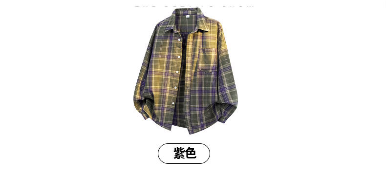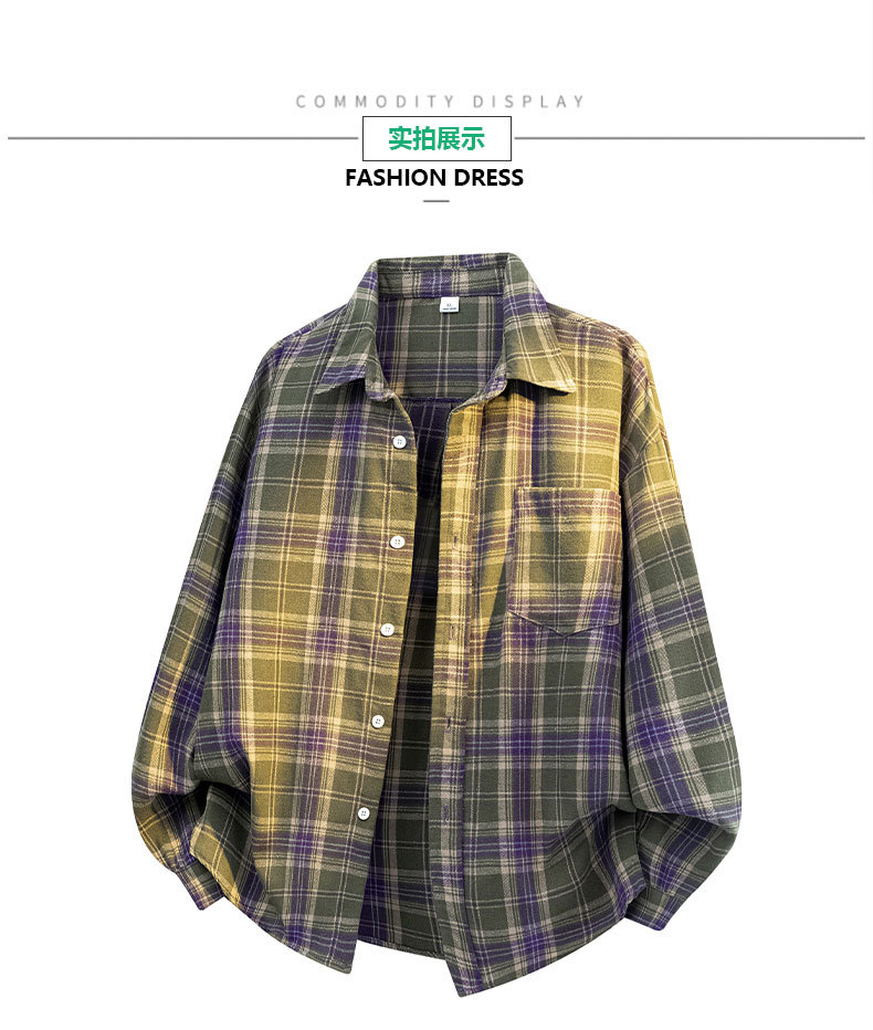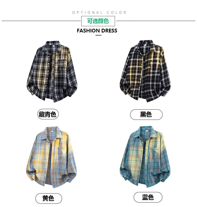 무료 배송 미국 스타일 네이비 격자 무늬 셔츠 남성용 봄과 가을 재킷 빈티지 셔츠 느슨한 긴 소매 CS2082스토어 가기
