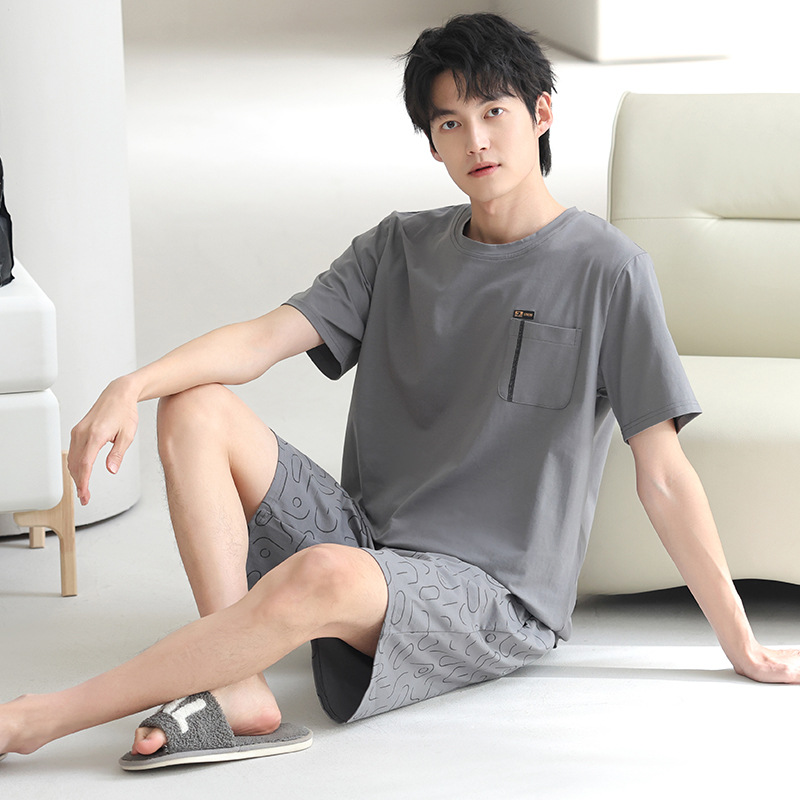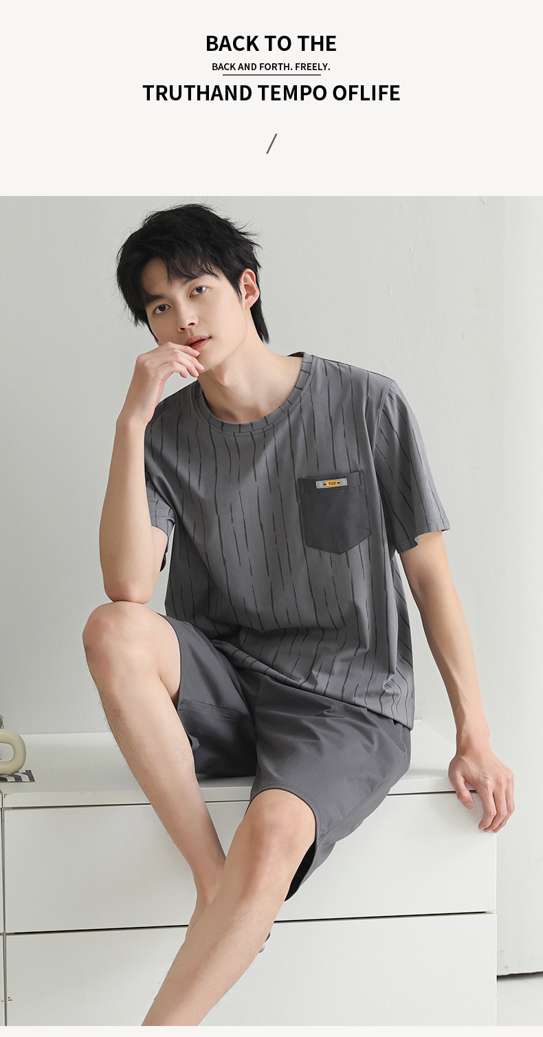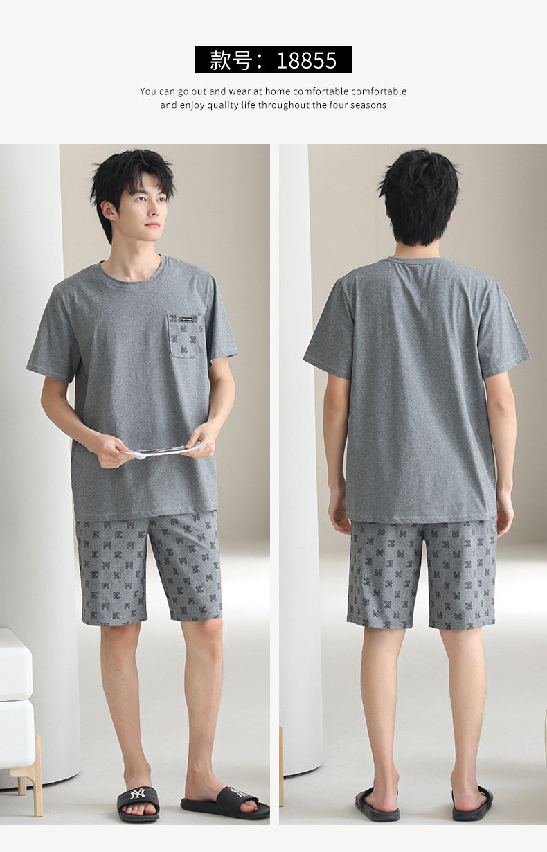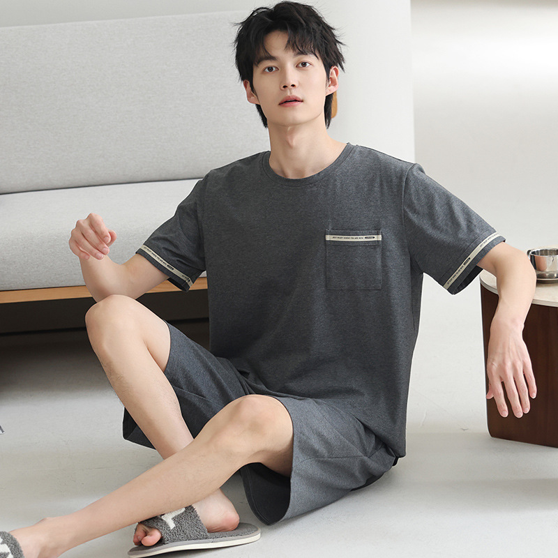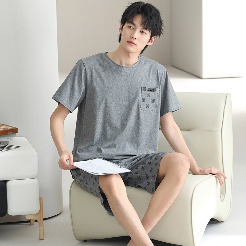 남성용 레이온 반팔 잠옷 여름 세트 얇은 순면 일본식 간단한 반바지 땀 흡수성 가정용 옷스토어 가기