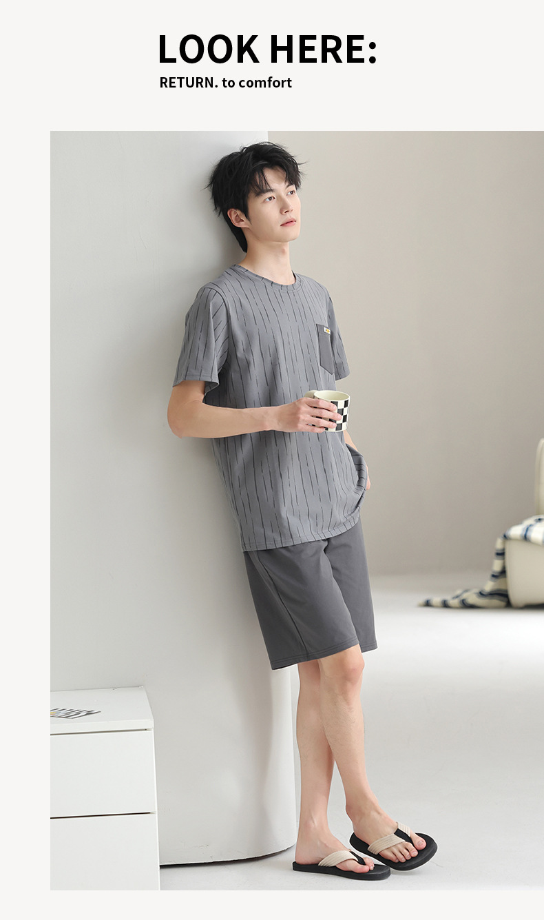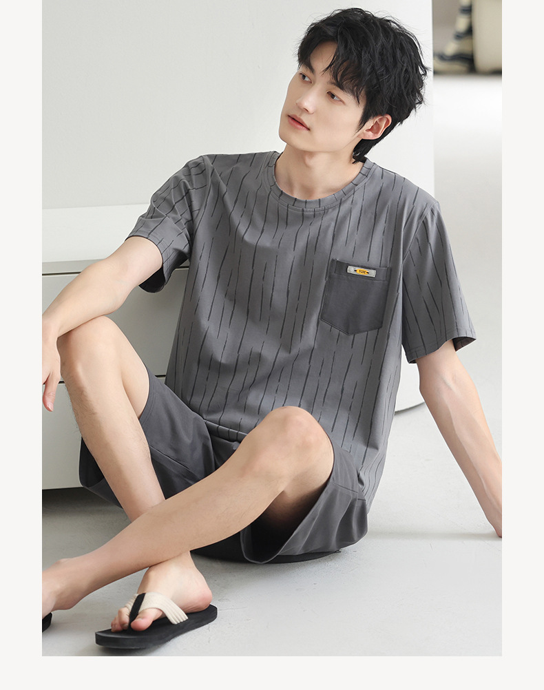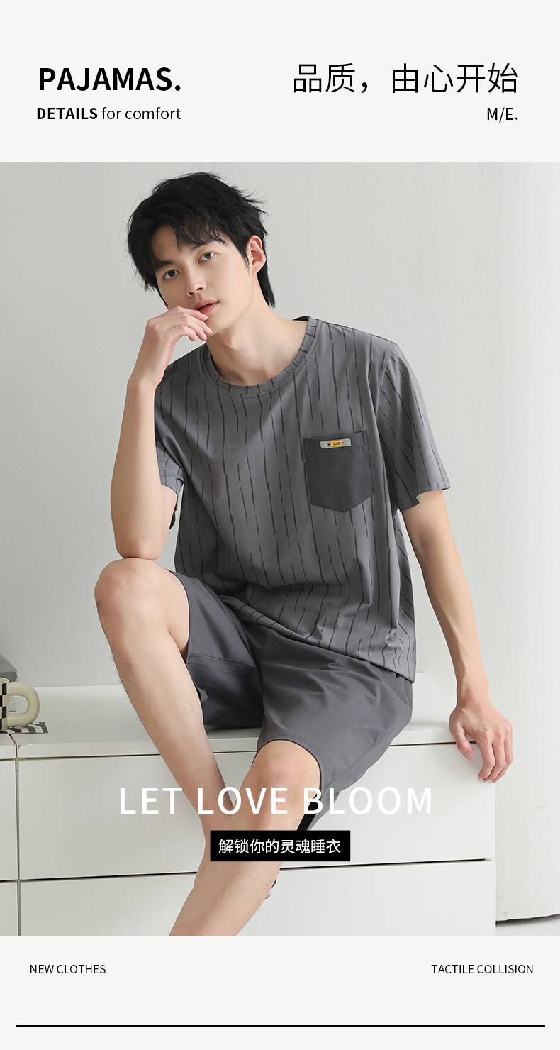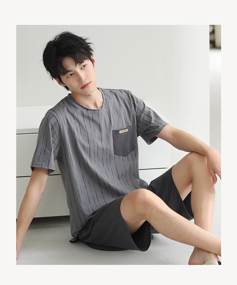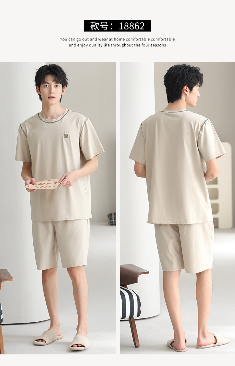 남성용 레이온 반팔 잠옷 여름 세트 얇은 순면 일본식 간단한 반바지 땀 흡수성 가정용 옷스토어 가기