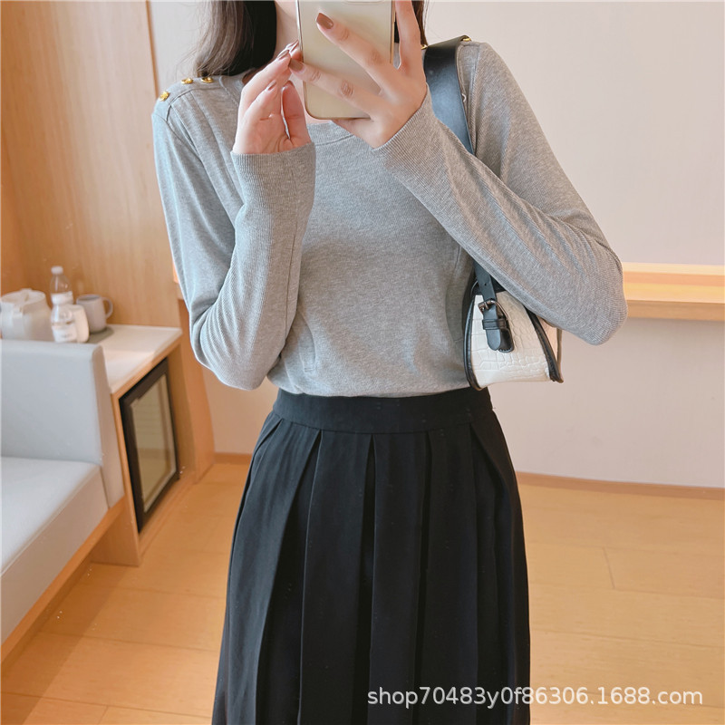 임신 한 여성베이스 셔츠 봄과 가을 내부 티셔츠 긴 소매 봄과 가을 옷 크루 넥 모유 수유 옷 왼쪽과 오른쪽 오프닝 9237스토어 가기