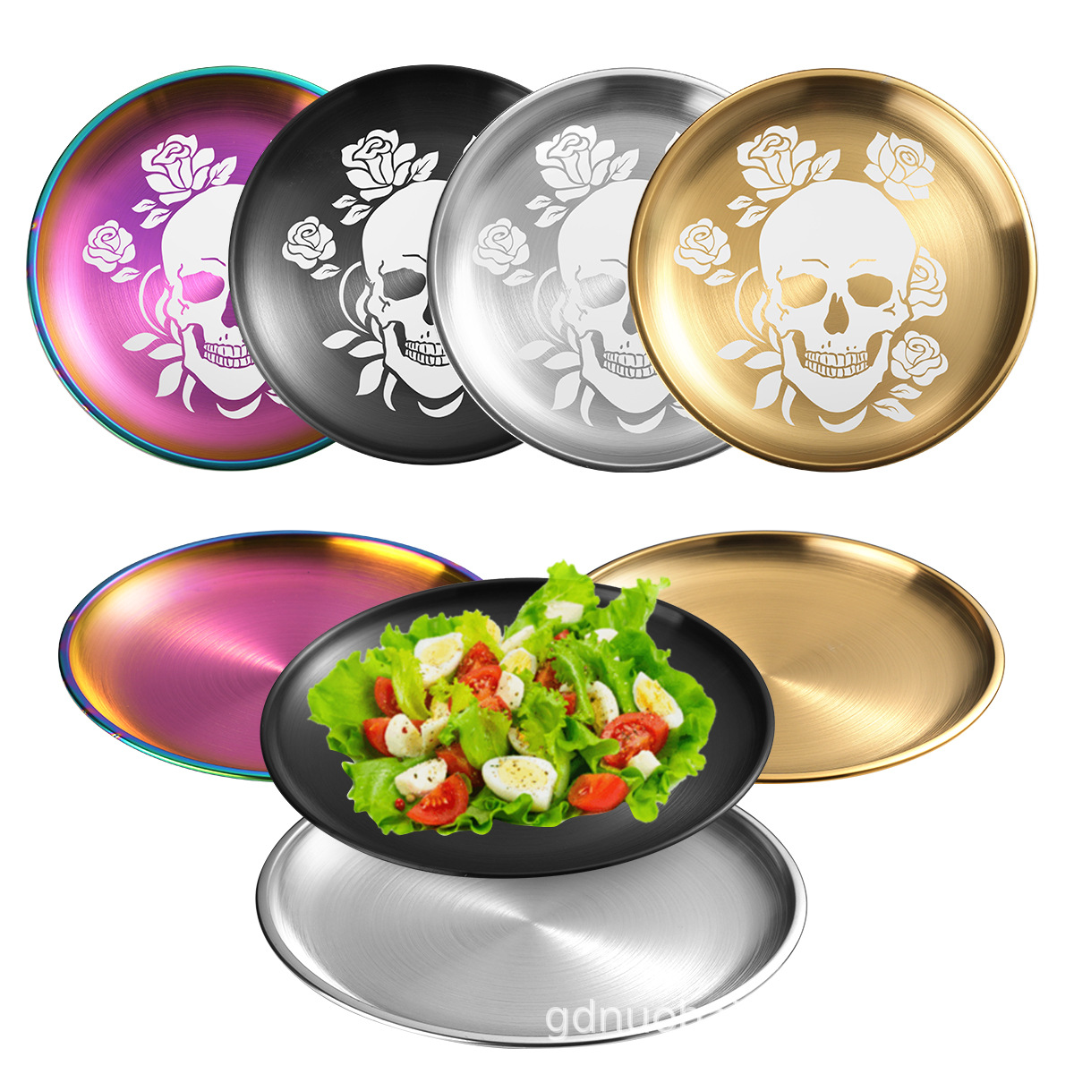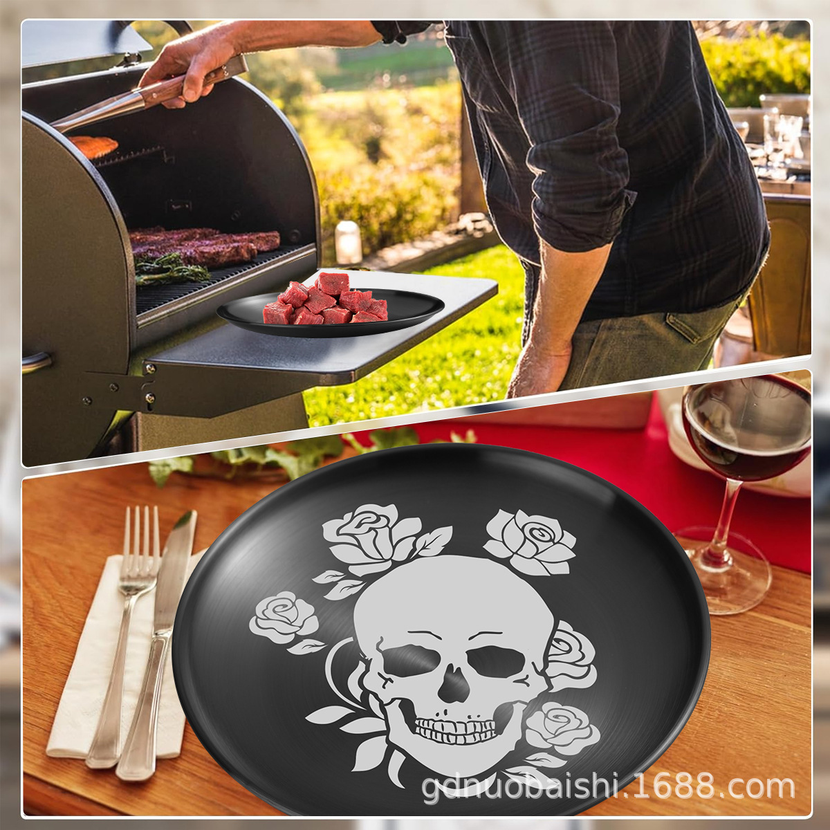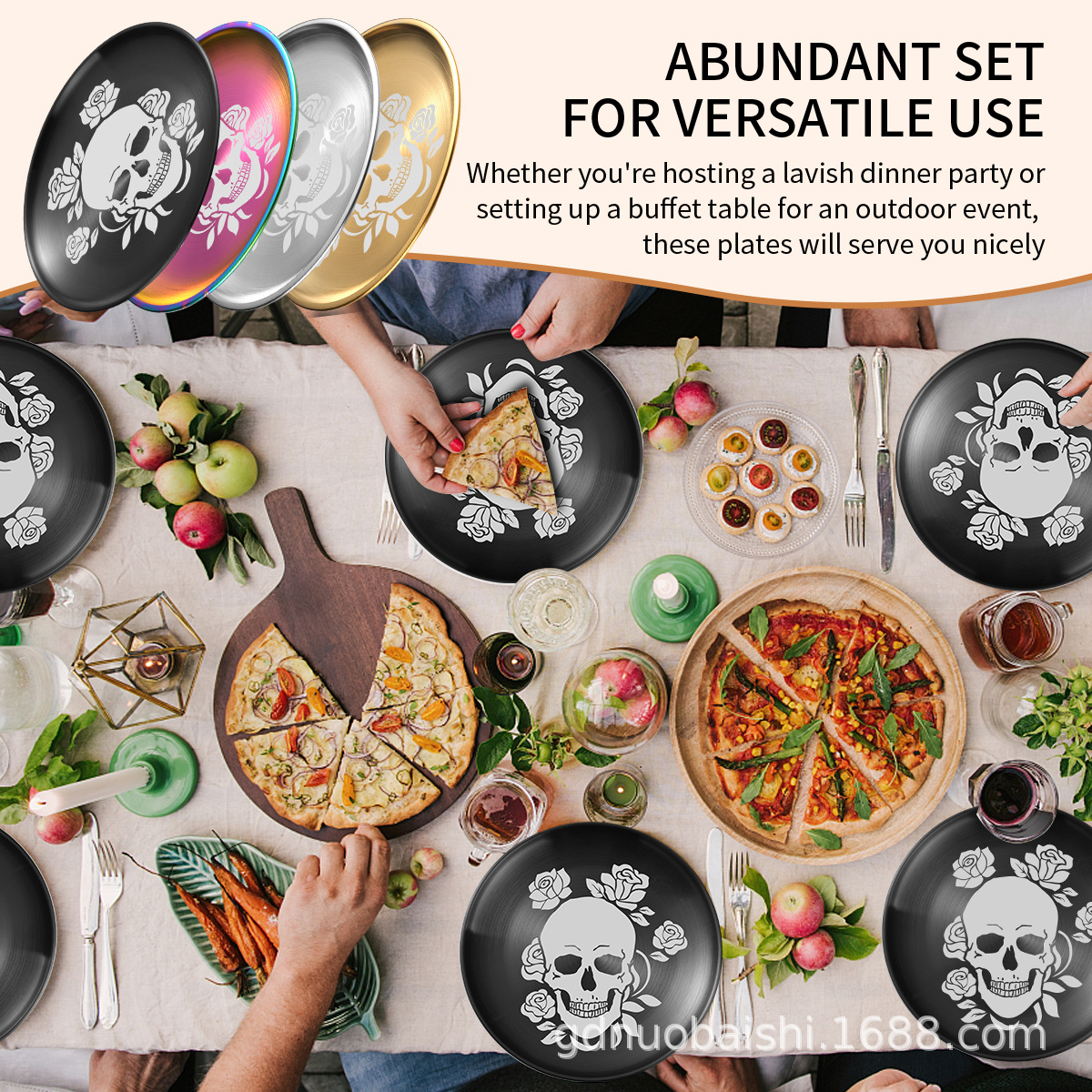 국경 새로운 20cm 스테인레스 스틸 디너 플레이트 레이저 두개골 패턴 야외 식기 저녁 식사 할로윈 파티