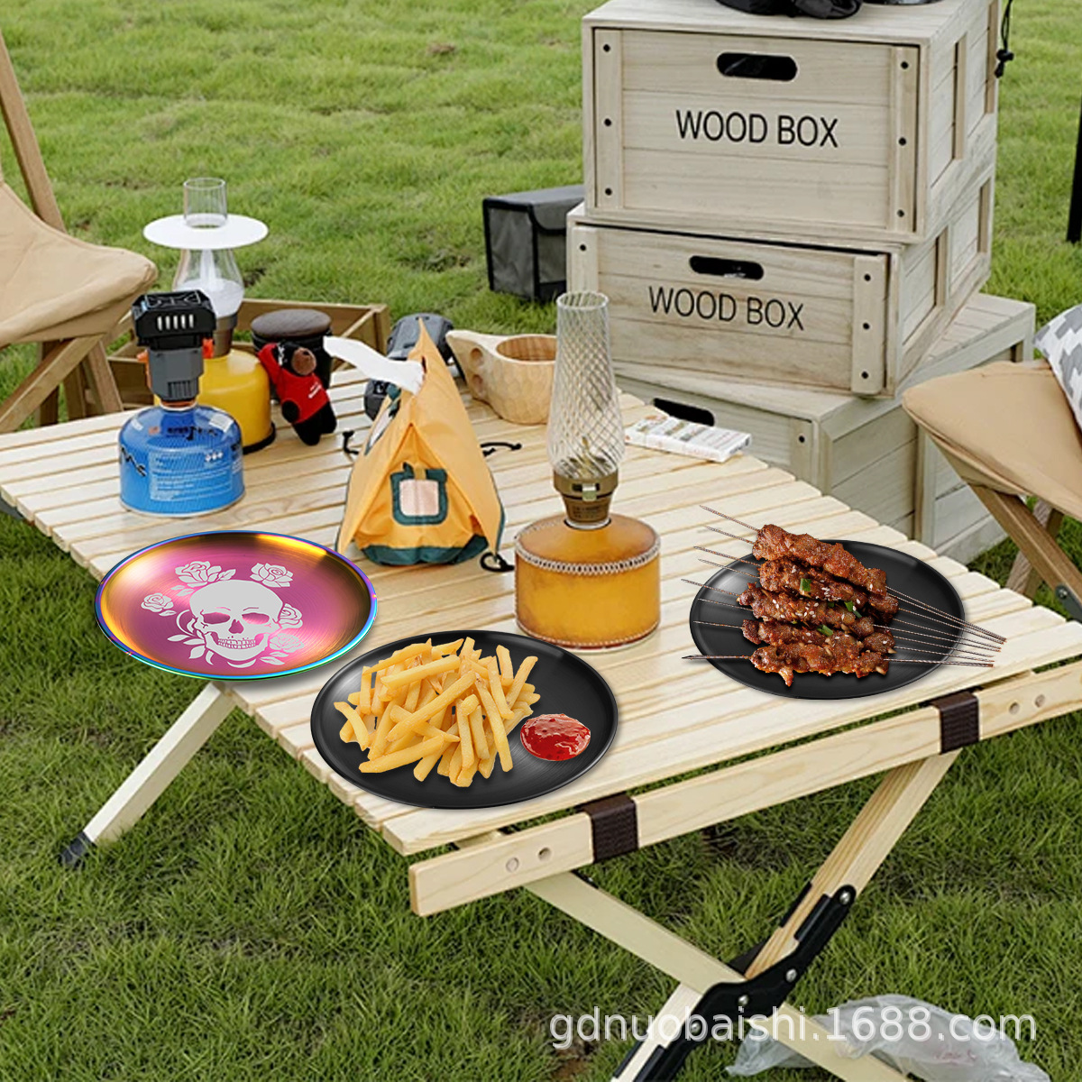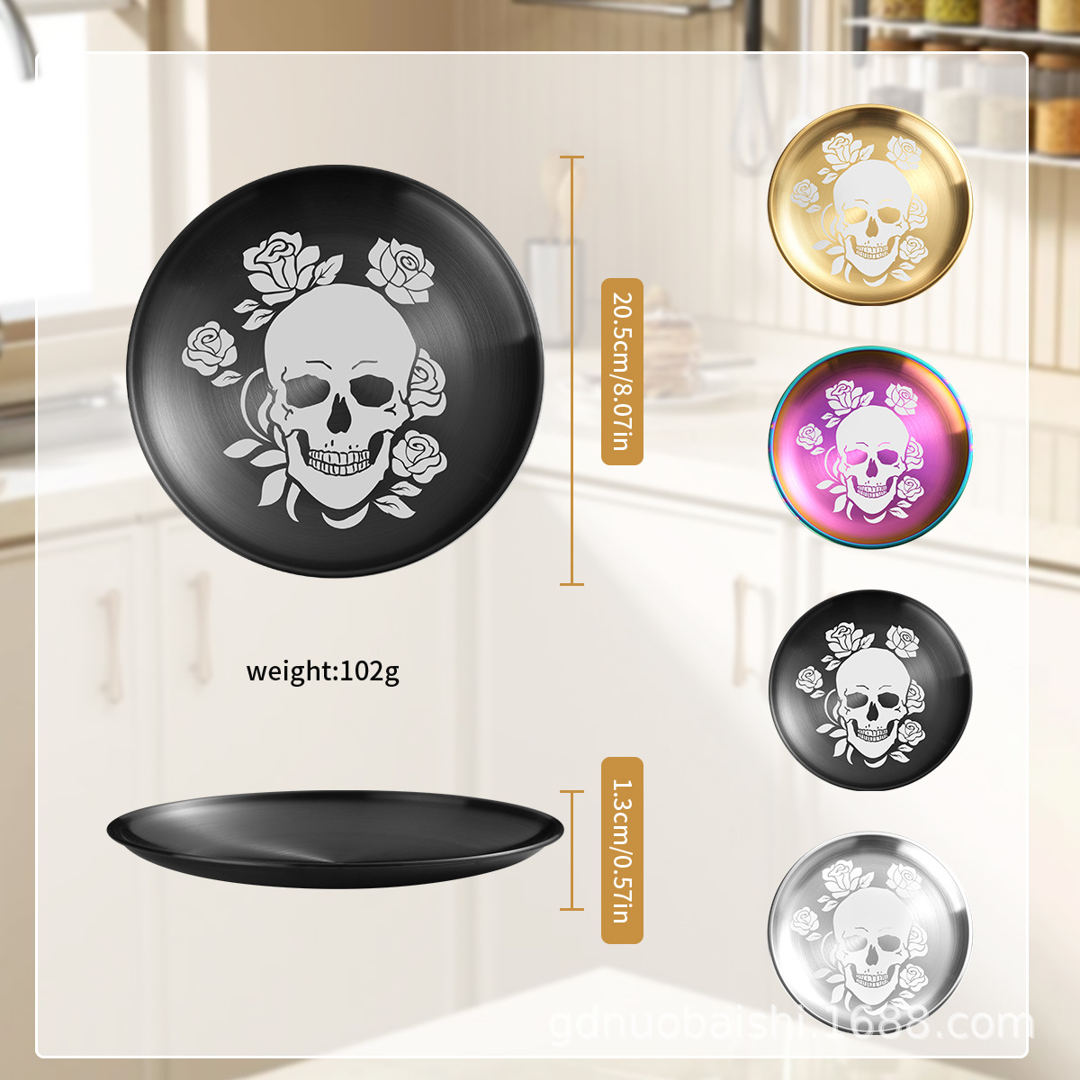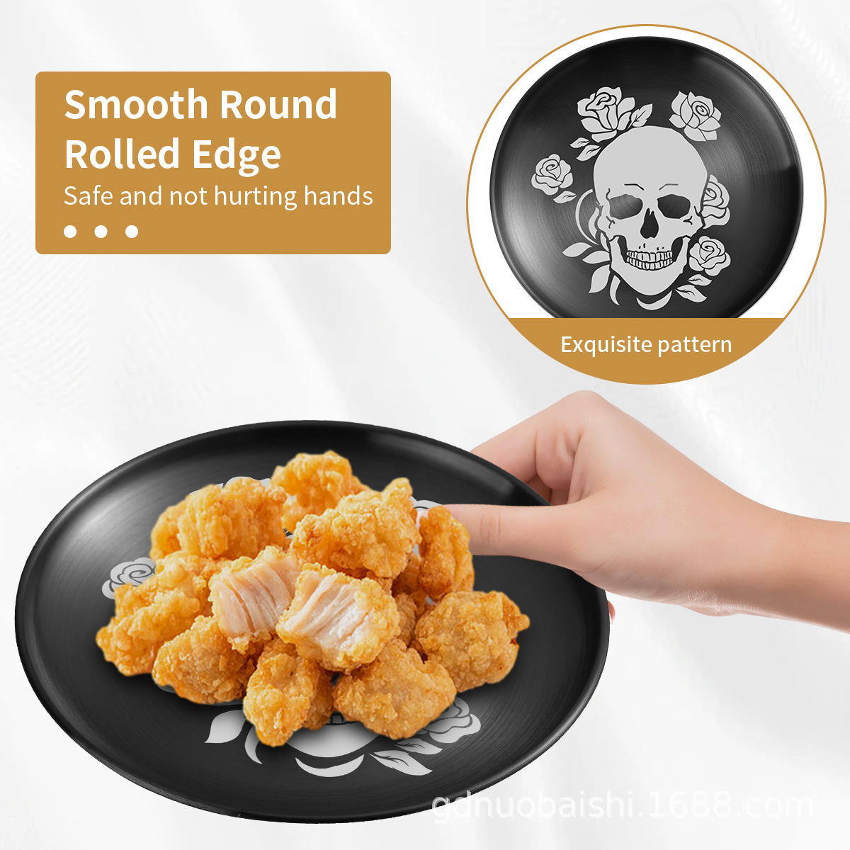 국경 새로운 20cm 스테인레스 스틸 디너 플레이트 레이저 두개골 패턴 야외 식기 저녁 식사 할로윈 파티