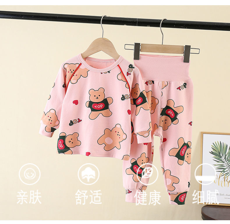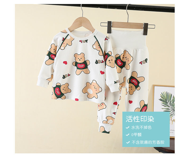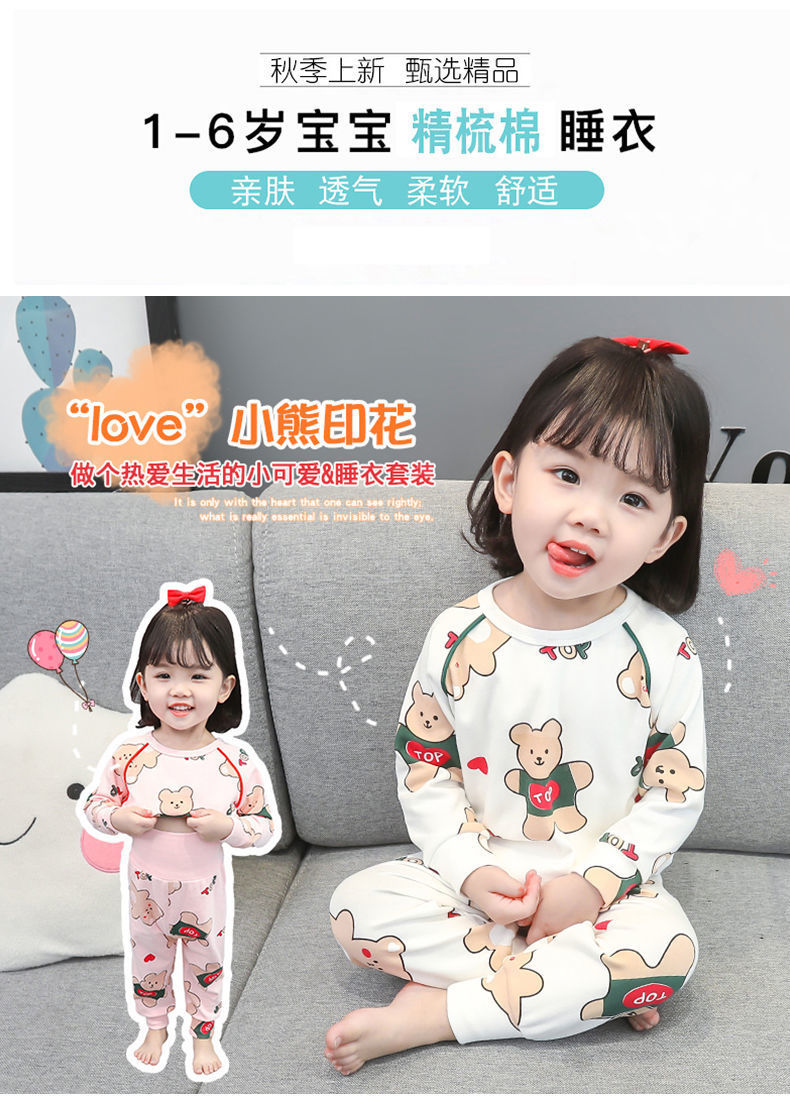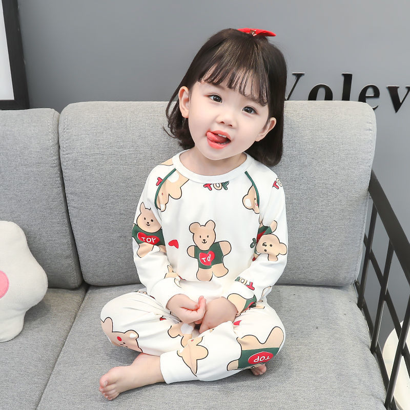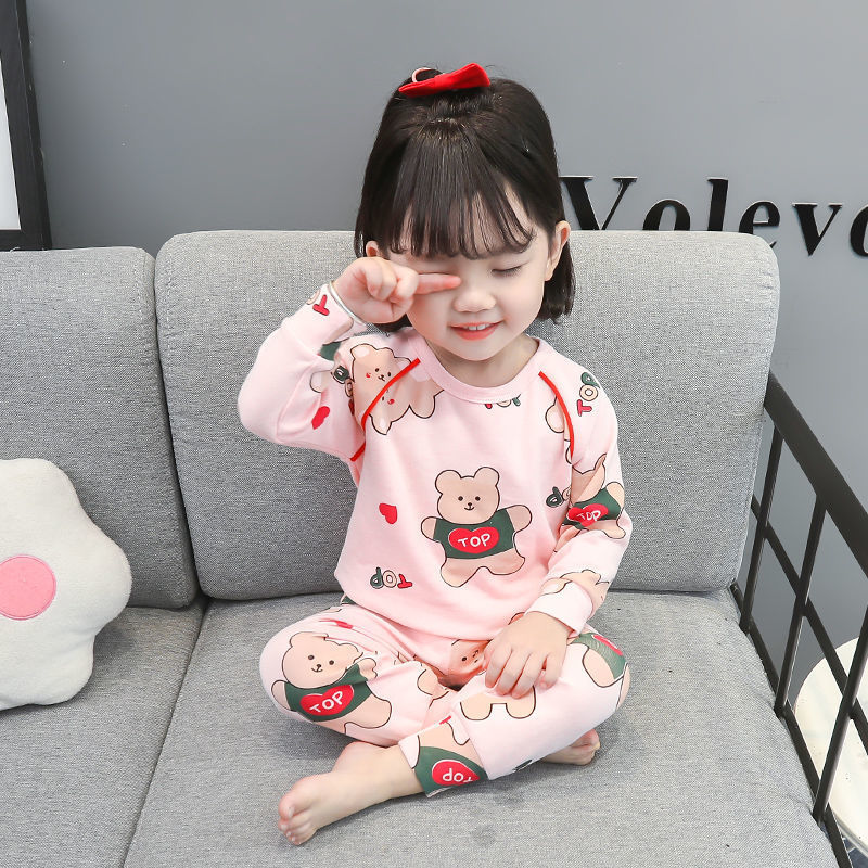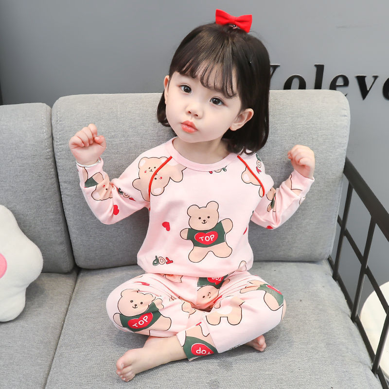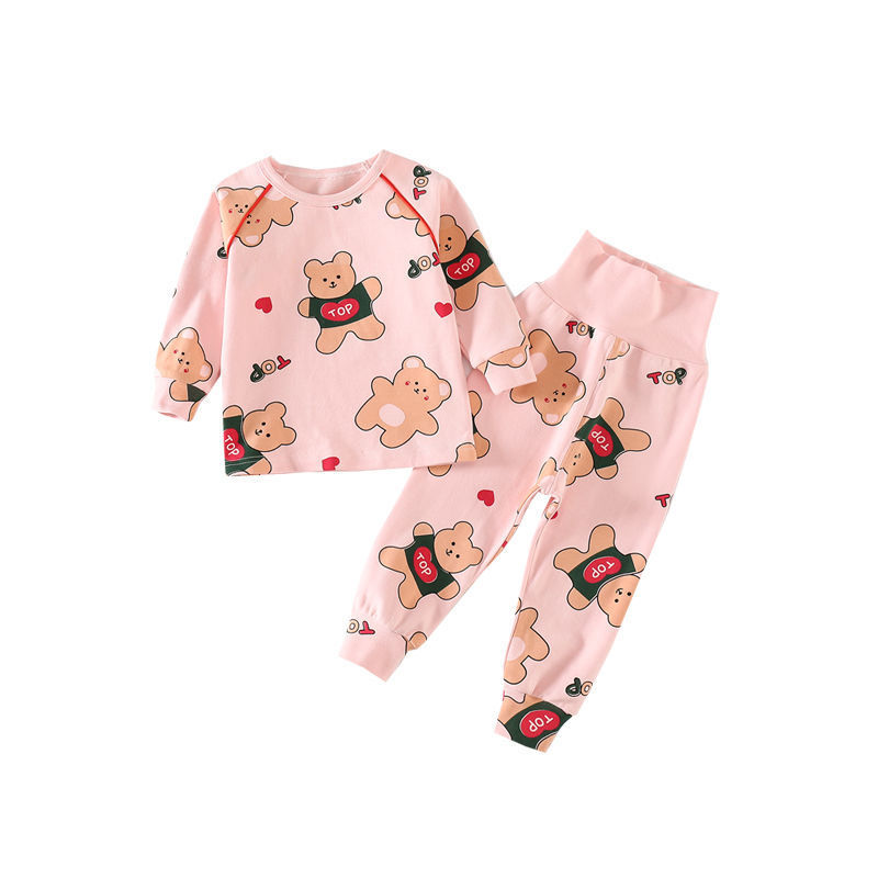 소녀 순면 잠옷 봄과 가을 얇은 어린이 긴 소매 어린 소녀의 귀여운 집 옷 아기의 높은 허리 배꼽 보호자 세트스토어 가기