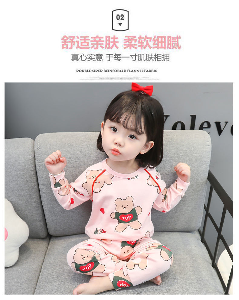 소녀 순면 잠옷 봄과 가을 얇은 어린이 긴 소매 어린 소녀의 귀여운 집 옷 아기의 높은 허리 배꼽 보호자 세트