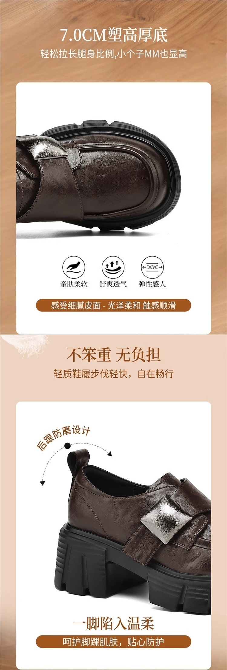 빈티지 두꺼운 밑창 로퍼 여성의 2024 새로운 가을 벨크로 두꺼운 싱글 레이어 신발 모든 영국 스타일의 작은 가죽 신발스토어 가기