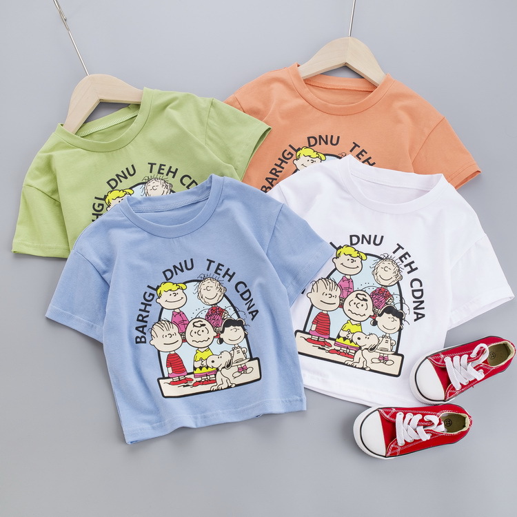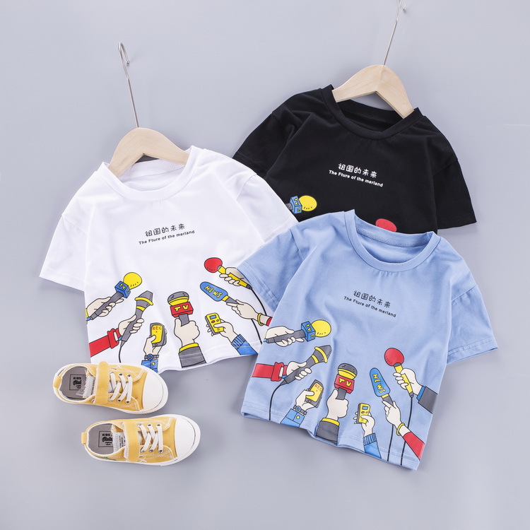 남학생 반팔 티셔츠 2025 여름 새로운 유행 어린이 아기 만화 캐주얼 느슨한 반소매 유행 티셔츠스토어 가기
