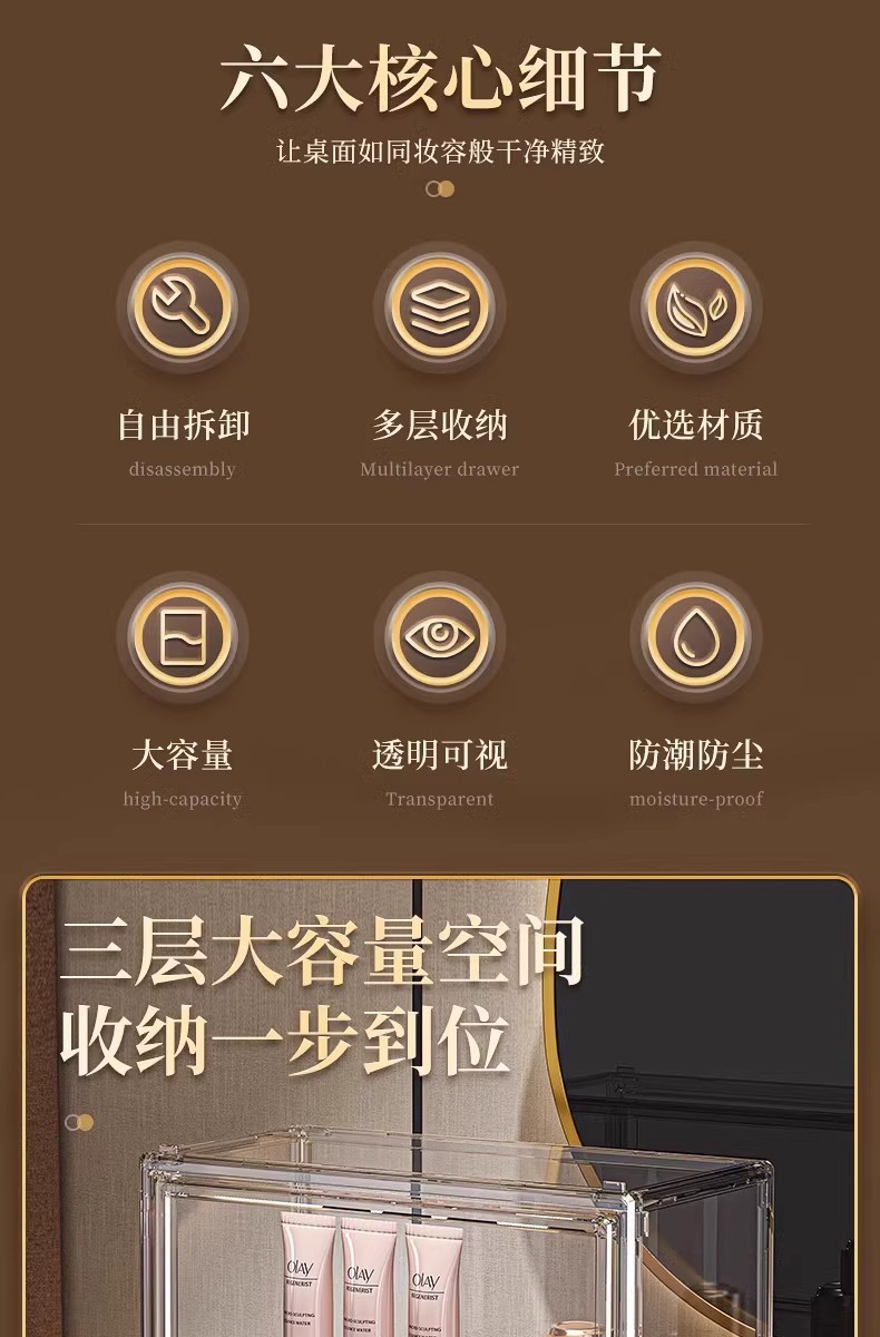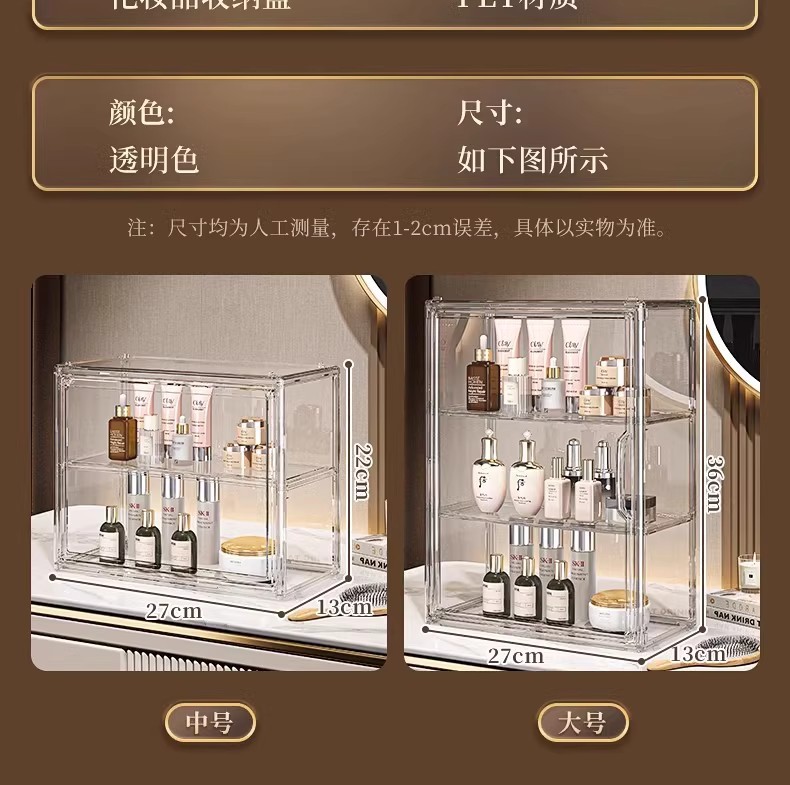 화장품 저장 상자 데스크탑 투명 방진 스킨 케어 드레싱 테이블 대용량 아크릴 파티션 저장 선반