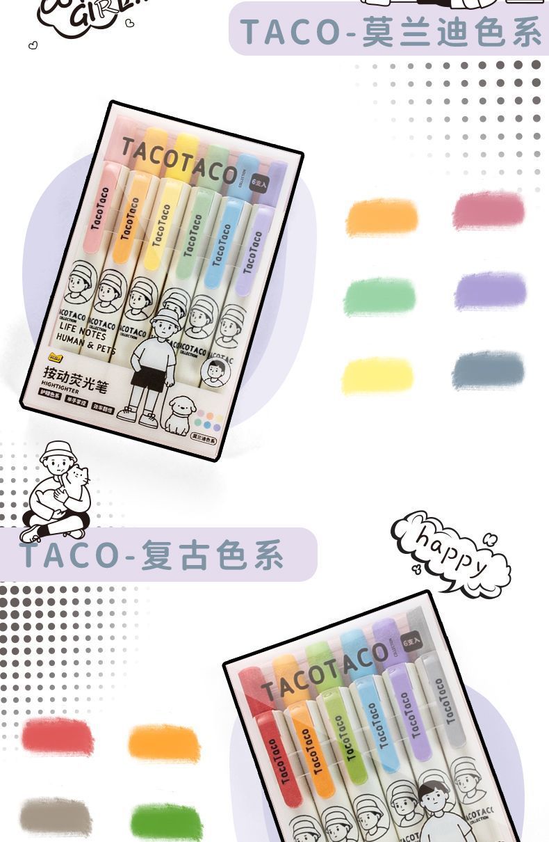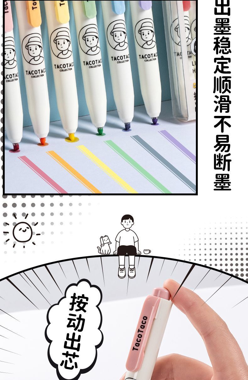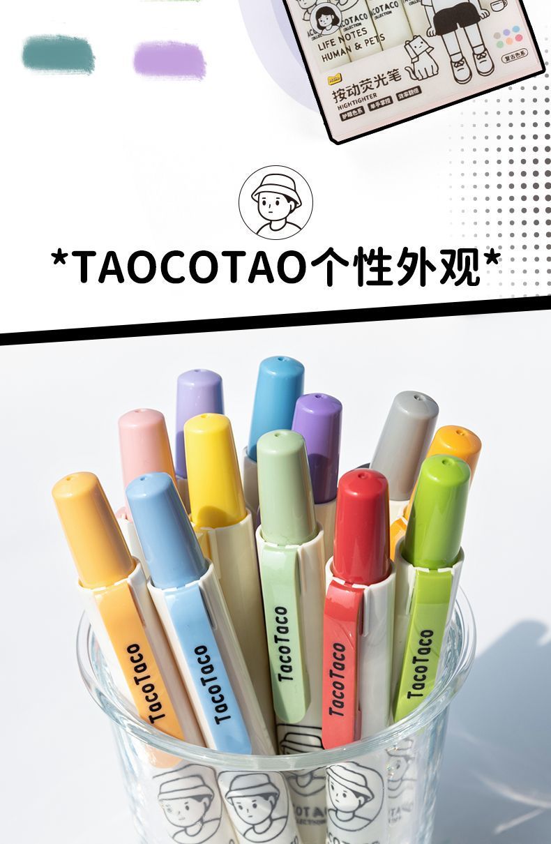 TacoTaco Joint Press 하이라이트 색상 표시 펜 학생들은 대용량 높은 색상 눈 보호 라이트 컬러 부서를 사용합니다.스토어 가기