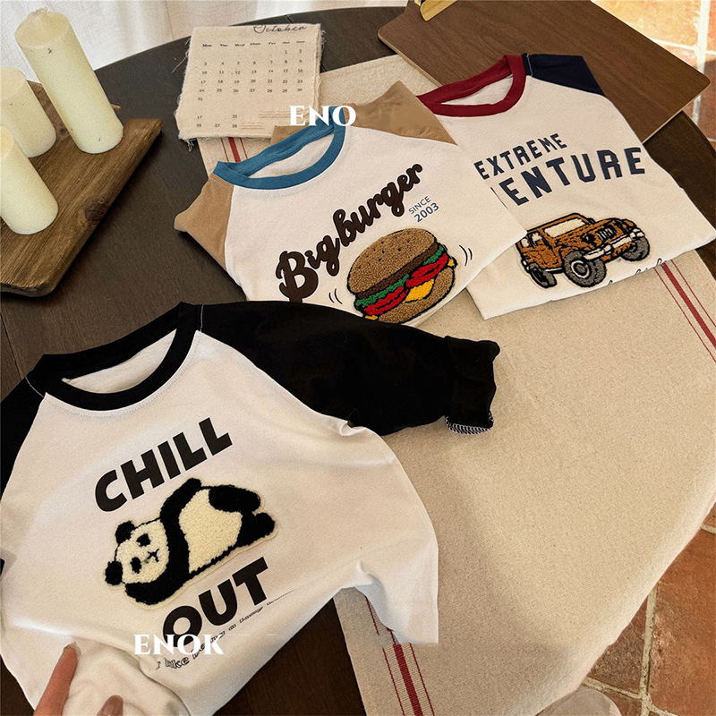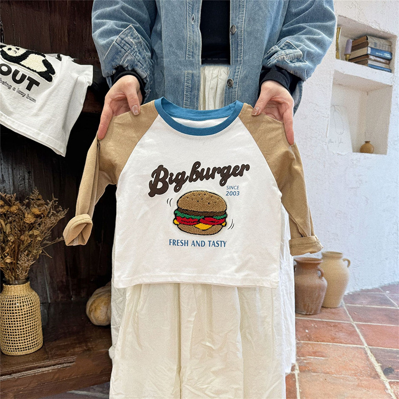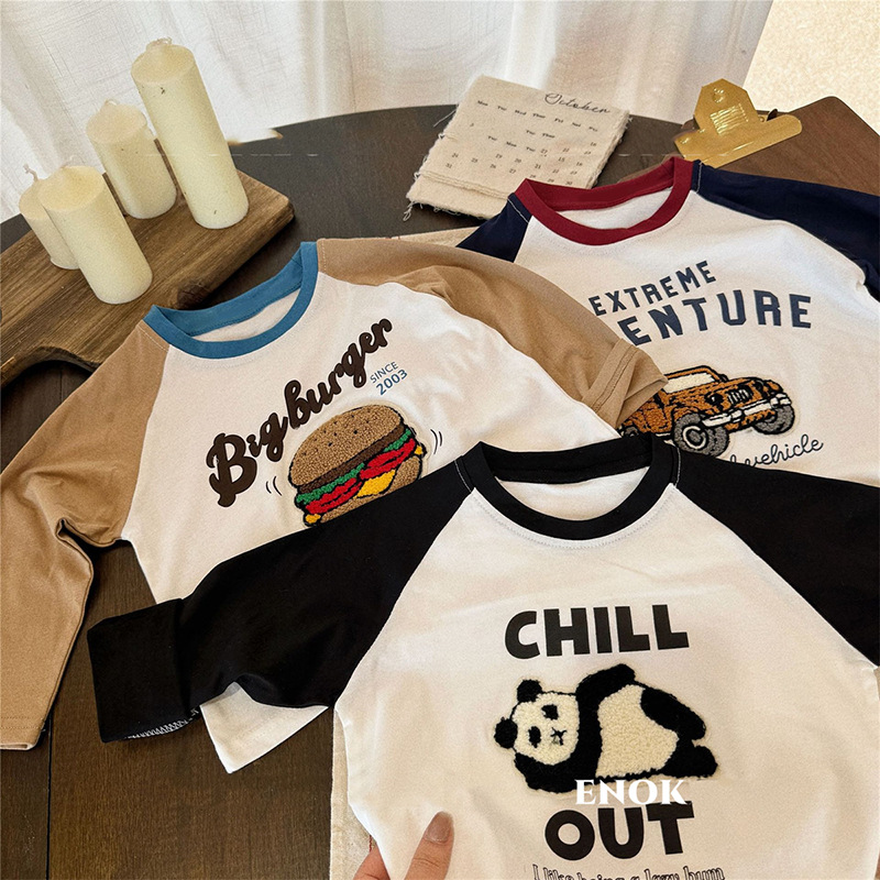 면 어린이 티셔츠 긴 소매 옷 2025 새로운 만화 캐주얼 올 매치 어린이 착용베이스 셔츠 봄과 가을스토어 가기