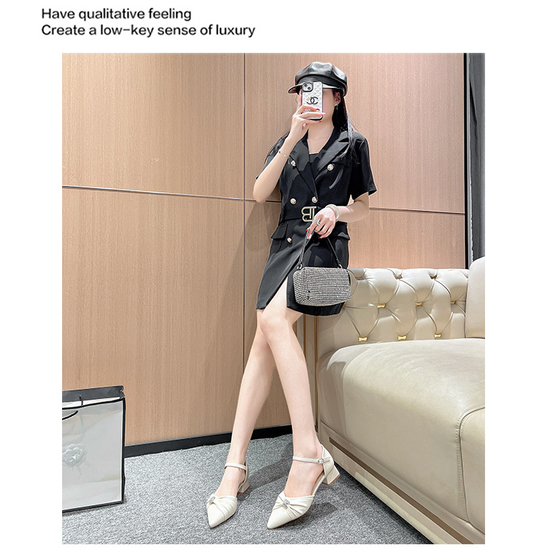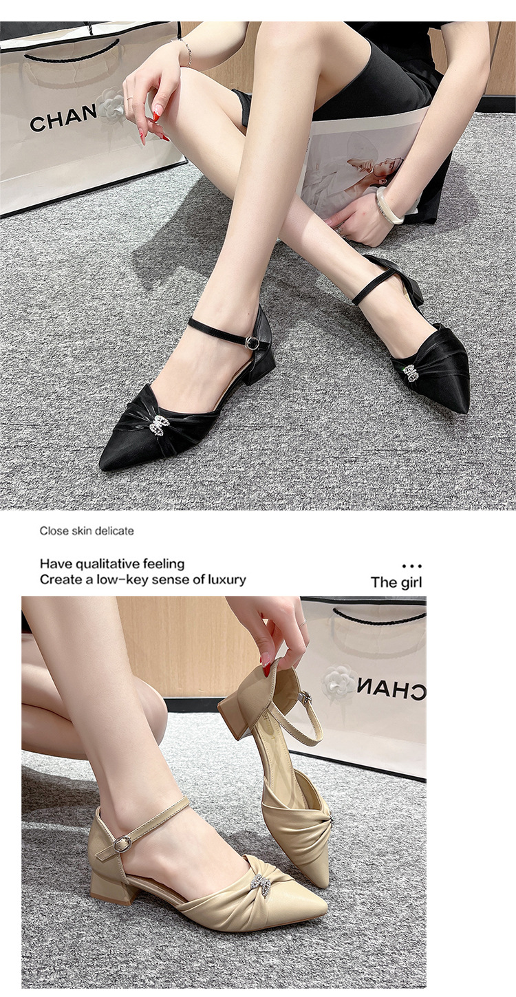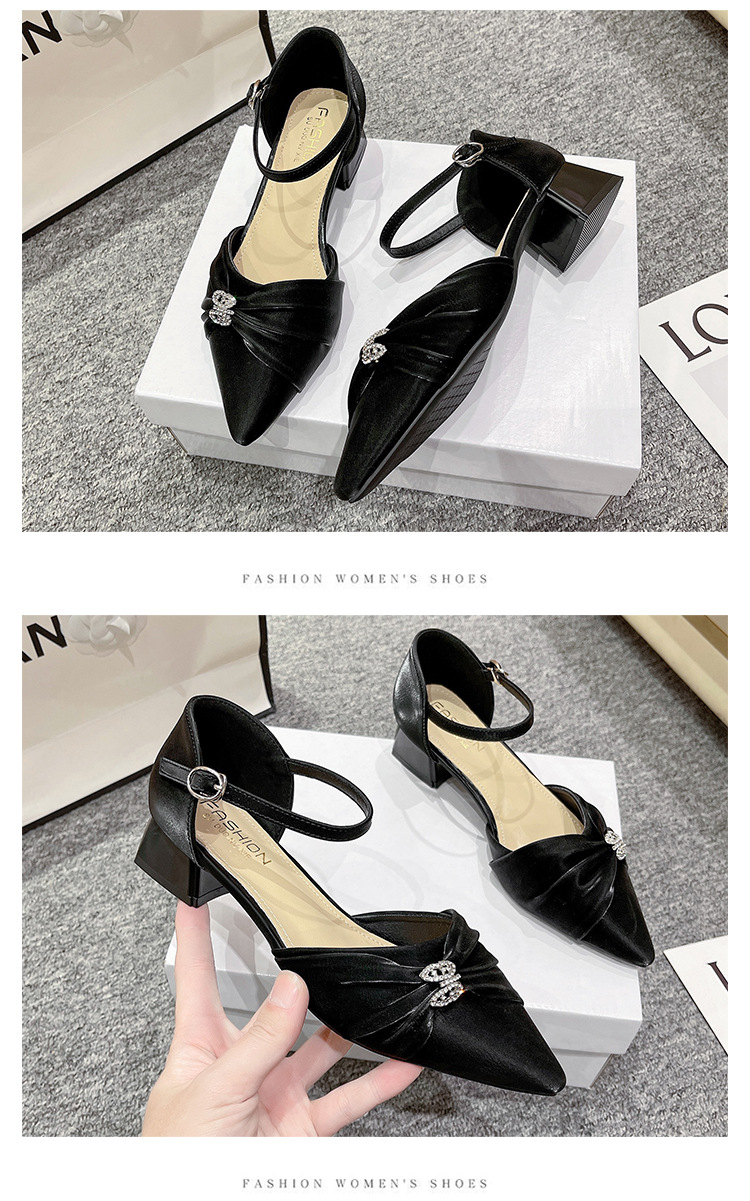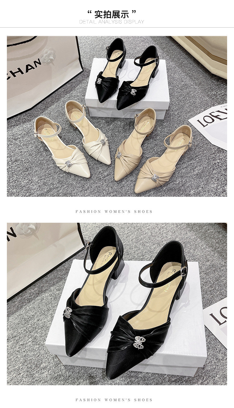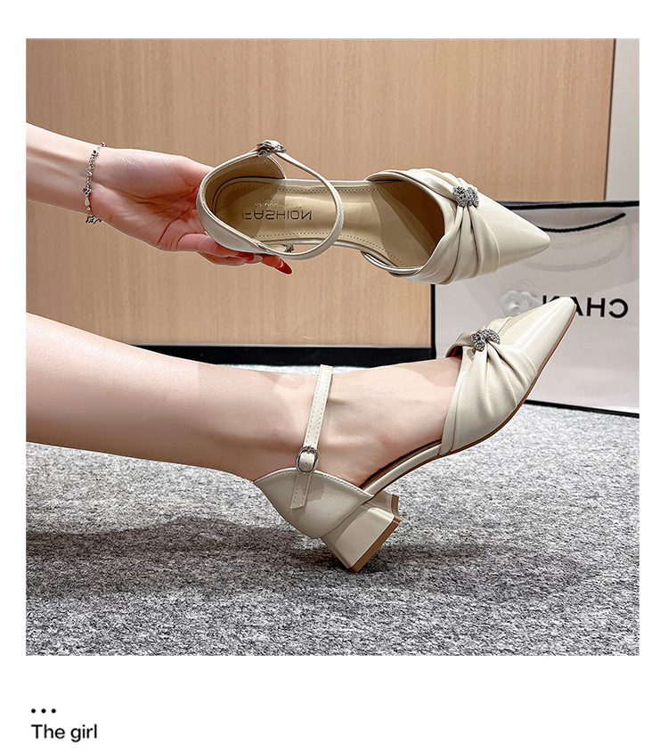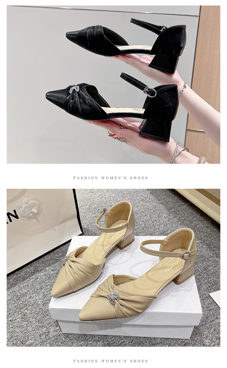 2025 겨울 새 여성 신발 Baotou 얇은 굽 Baotou 샌들 PU 고무 한 단어 버클 2025 봄 새로운