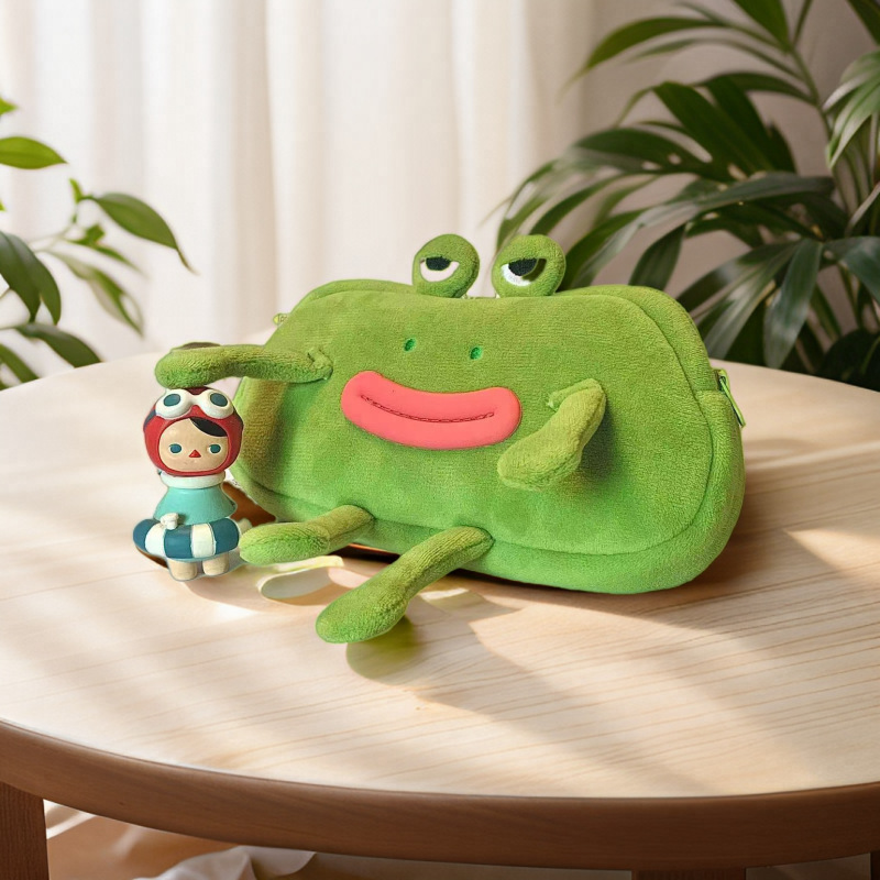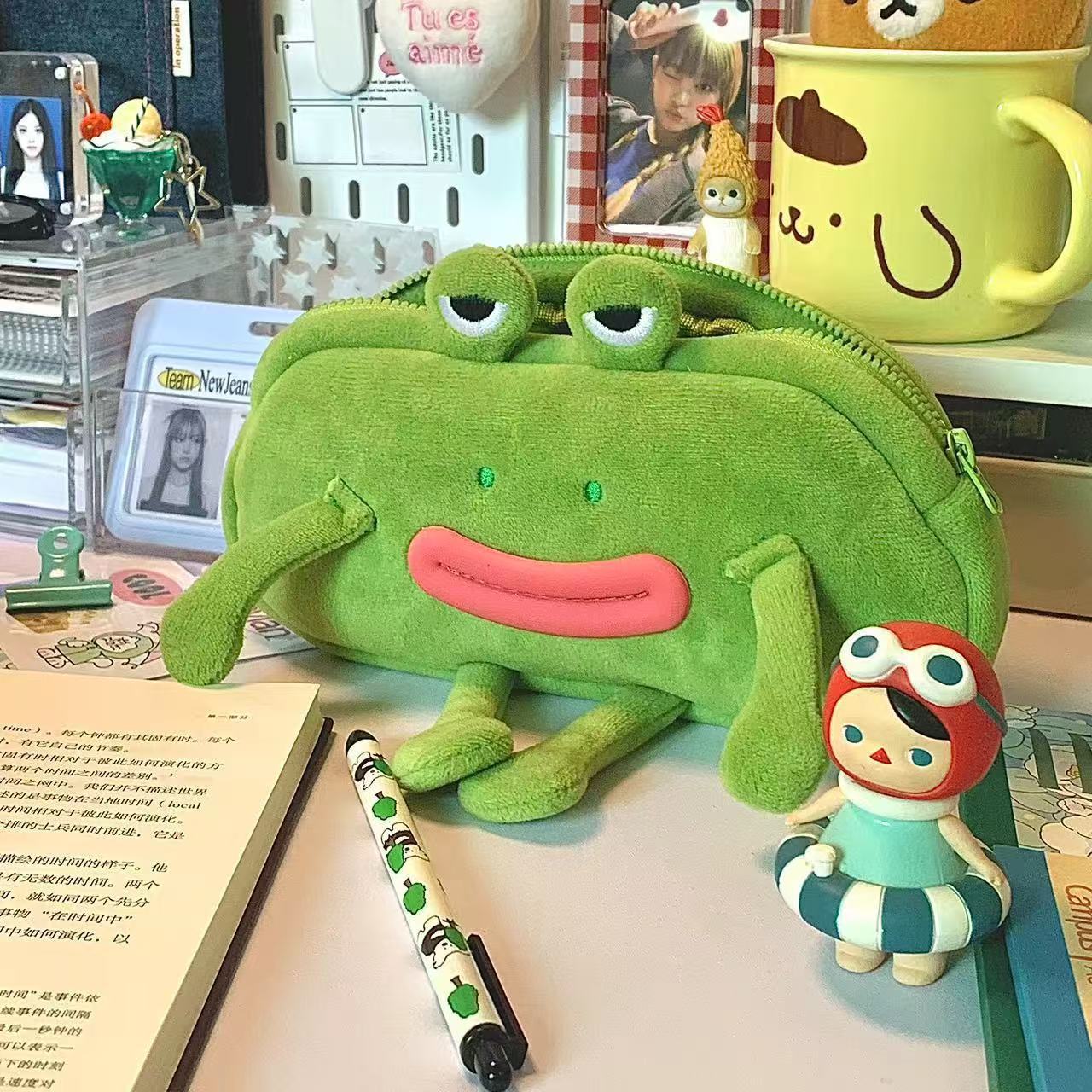 재미있는 큰 입 개구리 봉제 연필 가방 Ins 못생긴 귀여운 대용량 문구 가방 중학생 데스크탑 스토리지
