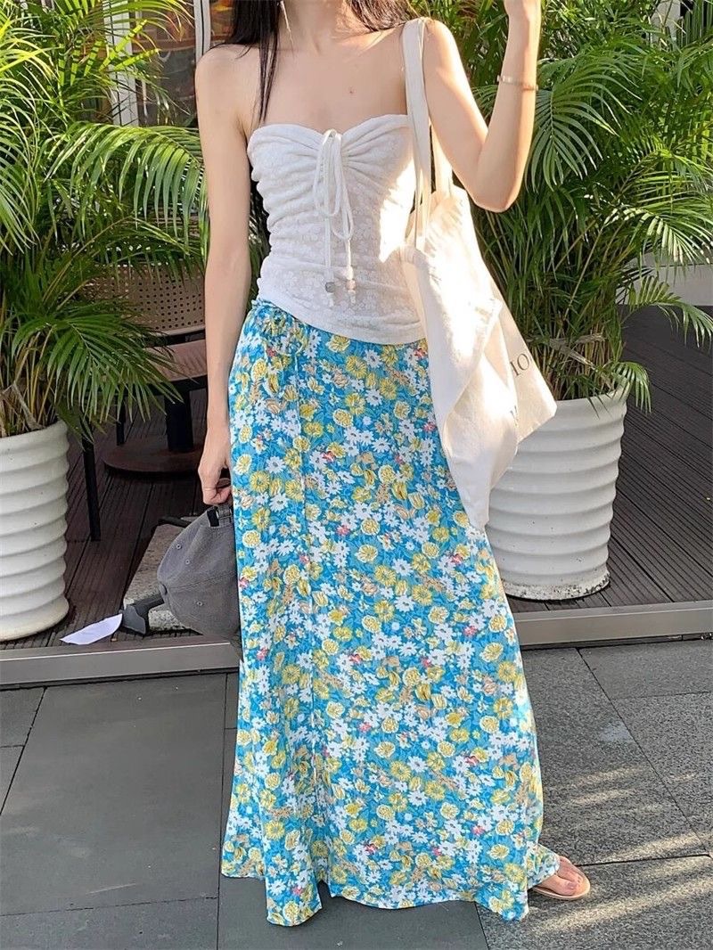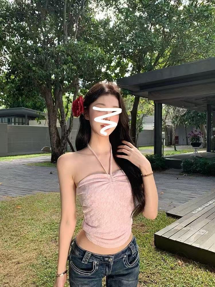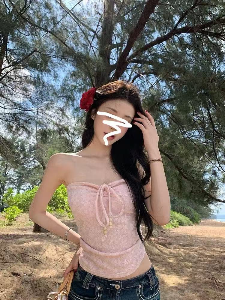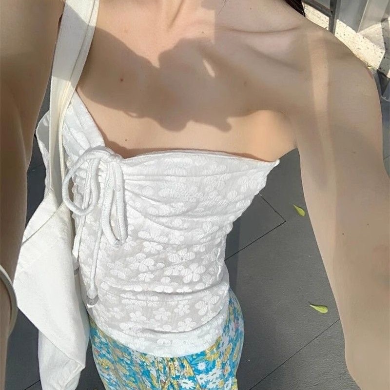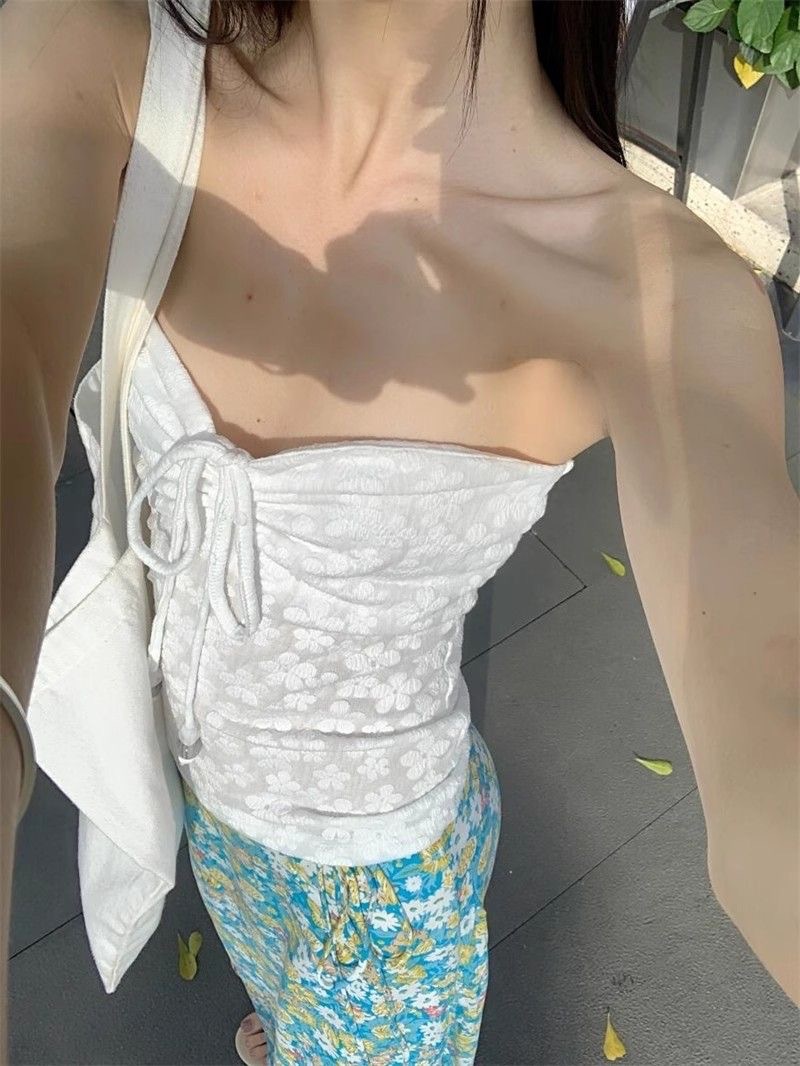 프랑스 화이트 교수형 목 3 차원 꽃 패턴 디자인 슬링 최고 여성의 여름 뜨거운 소녀 그림 튜브 탑