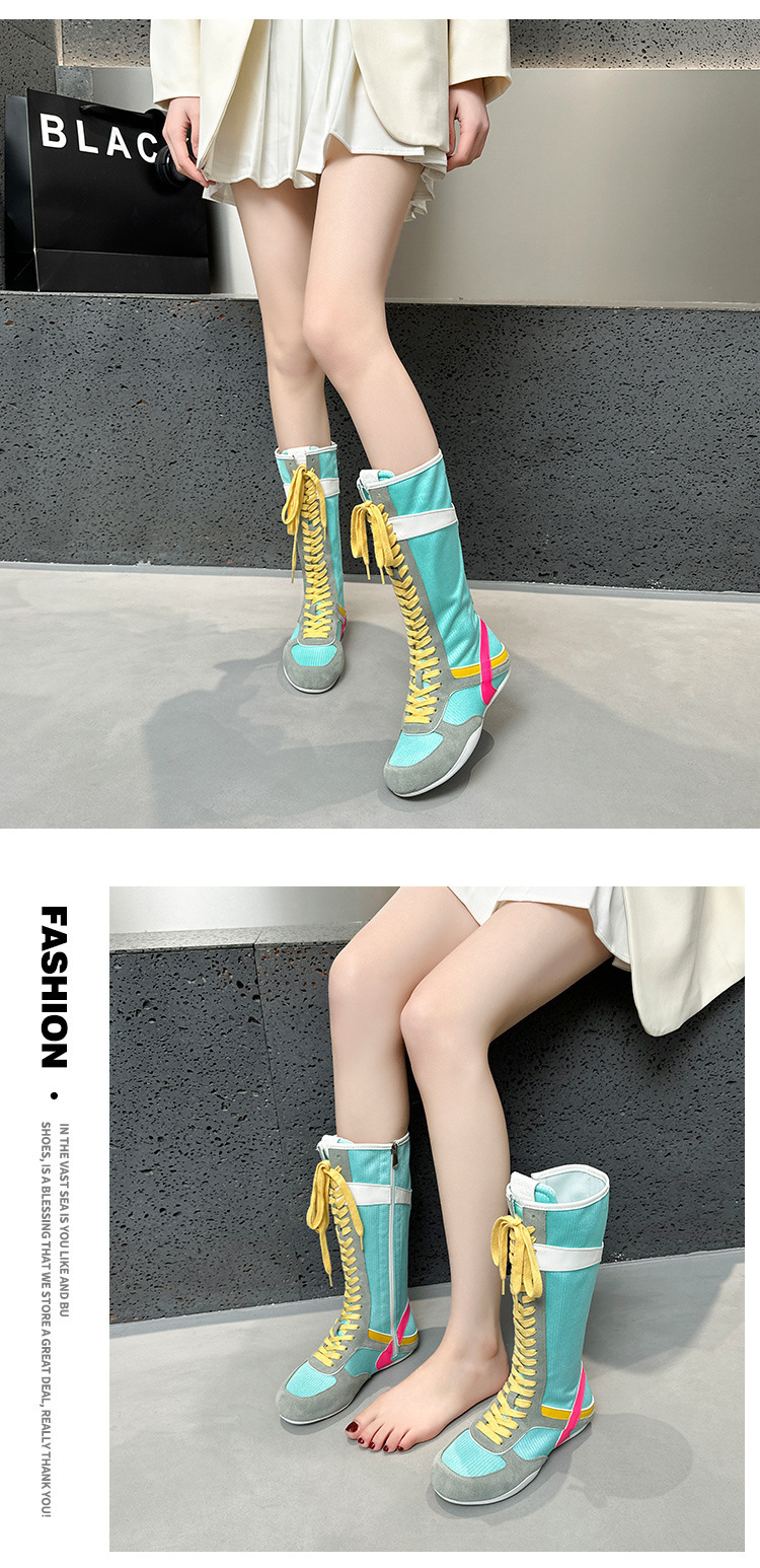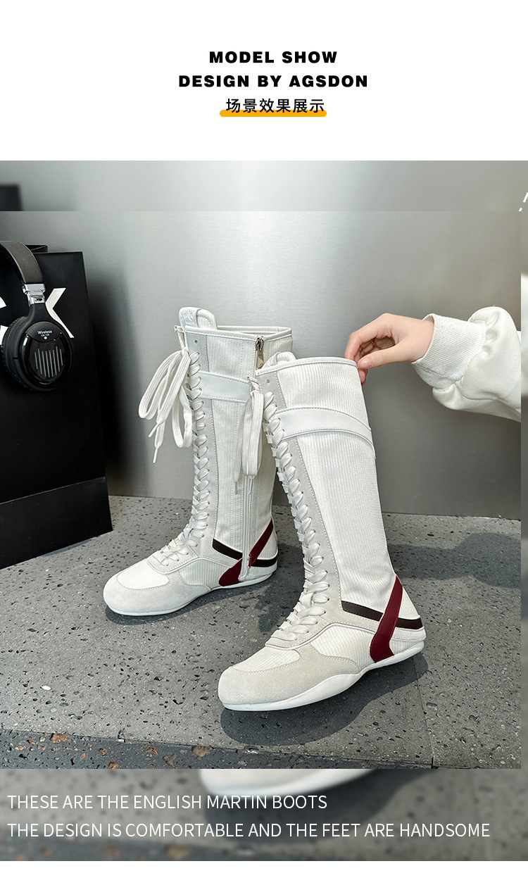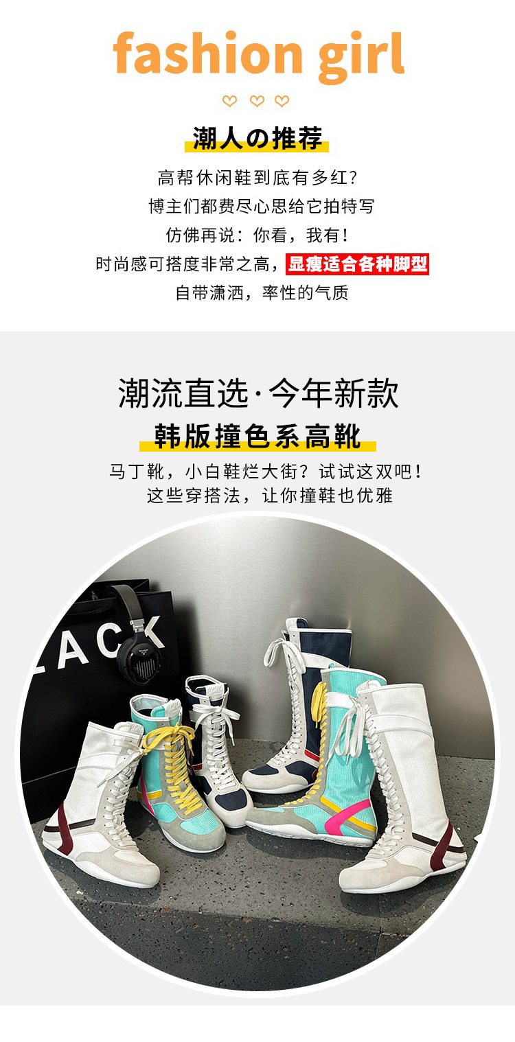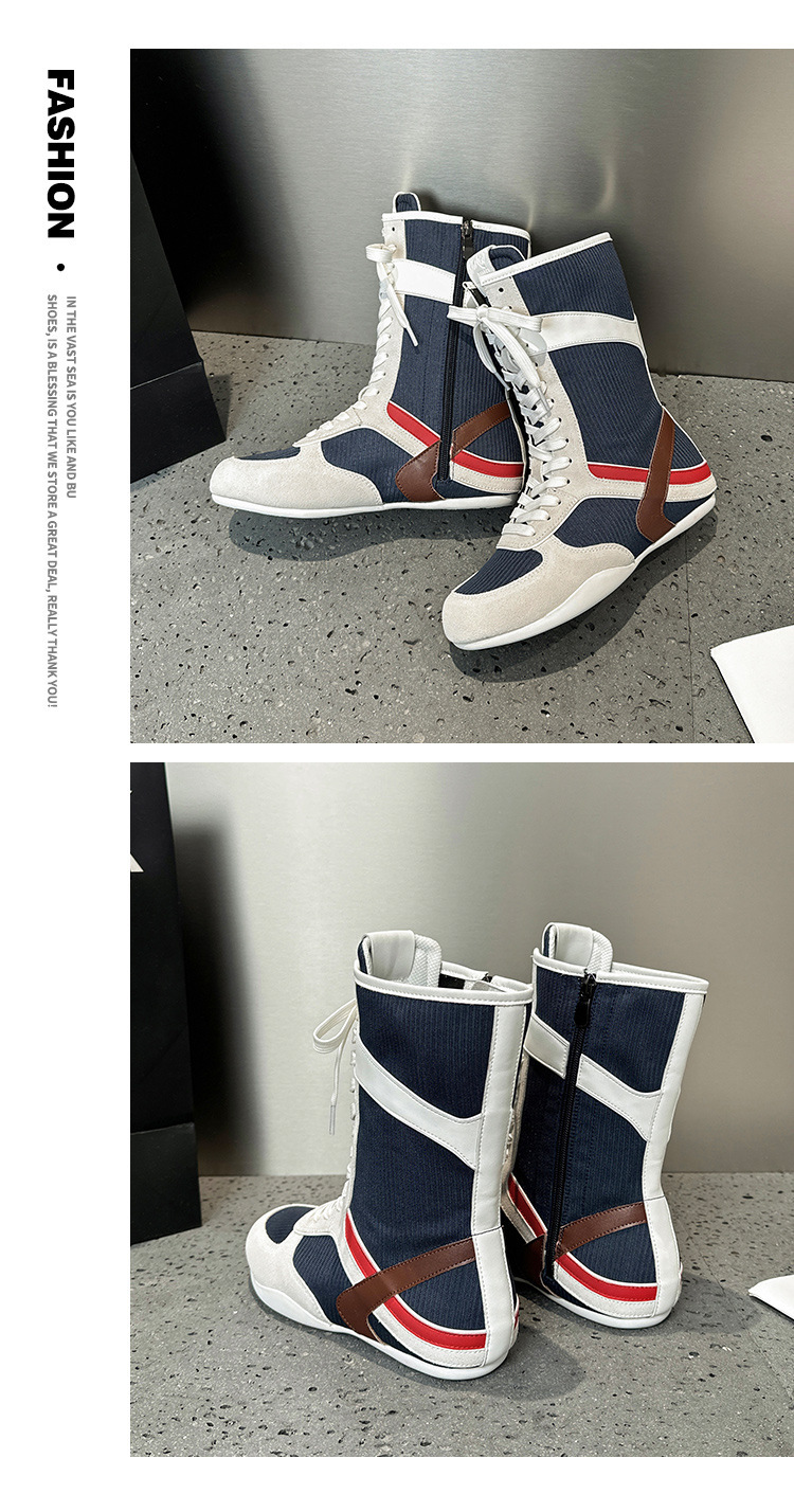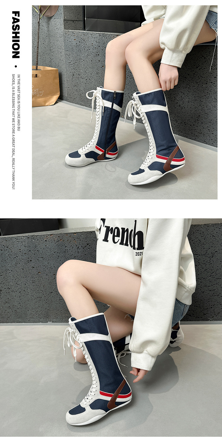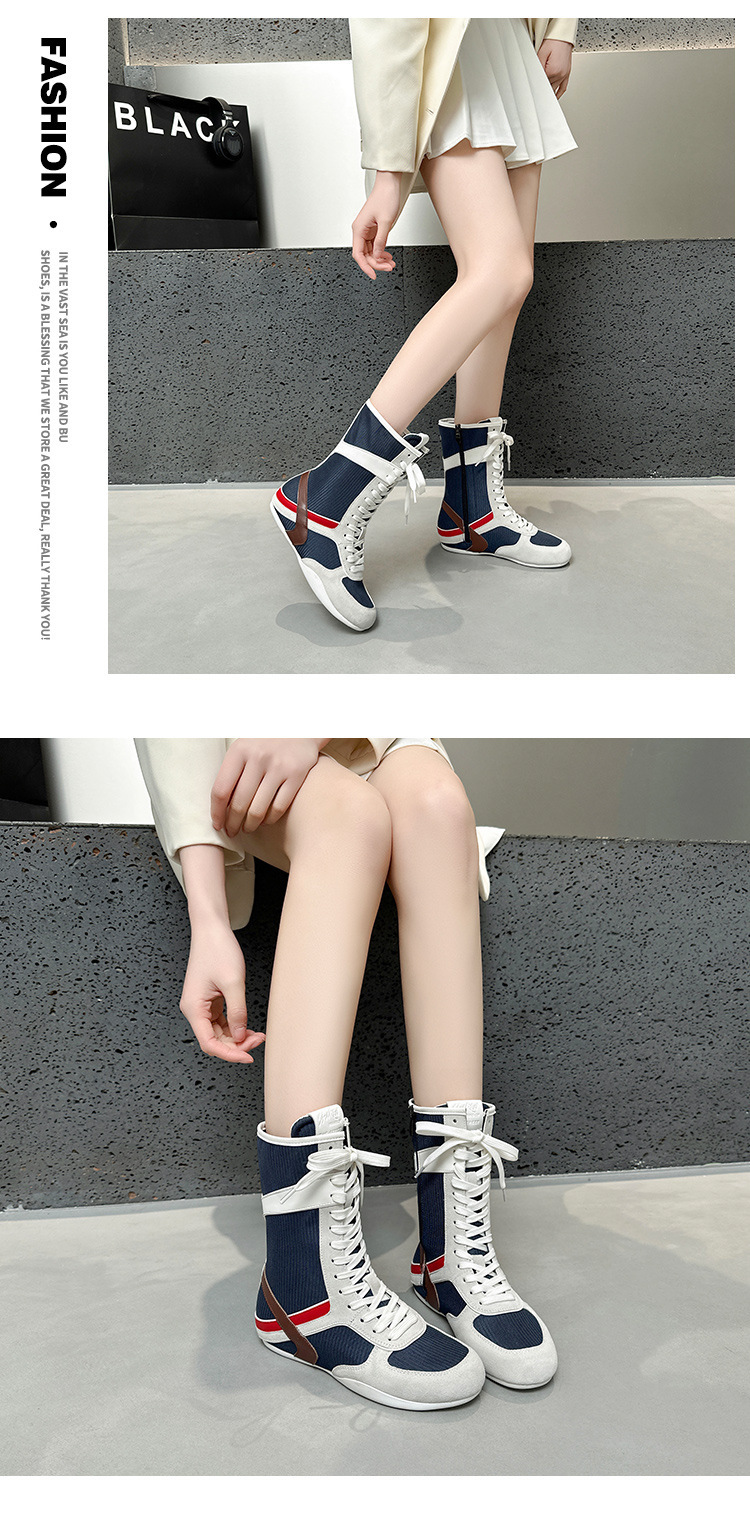 봄과 여름 2025 정품 가죽 하이 사이드 지퍼 소프트 하단 캐주얼 인테리어 높이 증가 유행 색상 매칭 스트랩 플랫 하단 부츠스토어 가기