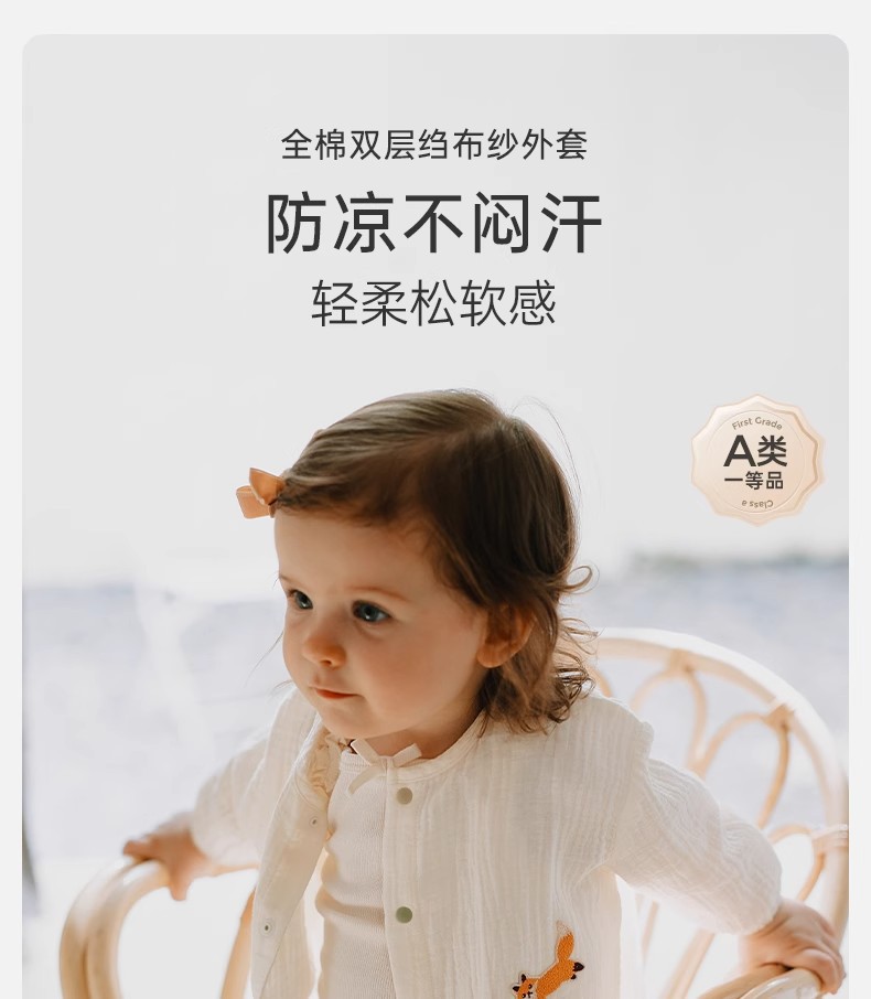 [모란디] 봄과 가을 아기 긴 소매 얇은 코트 코튼 크레페 경량 통기성 아기 에어컨 카디건스토어 가기