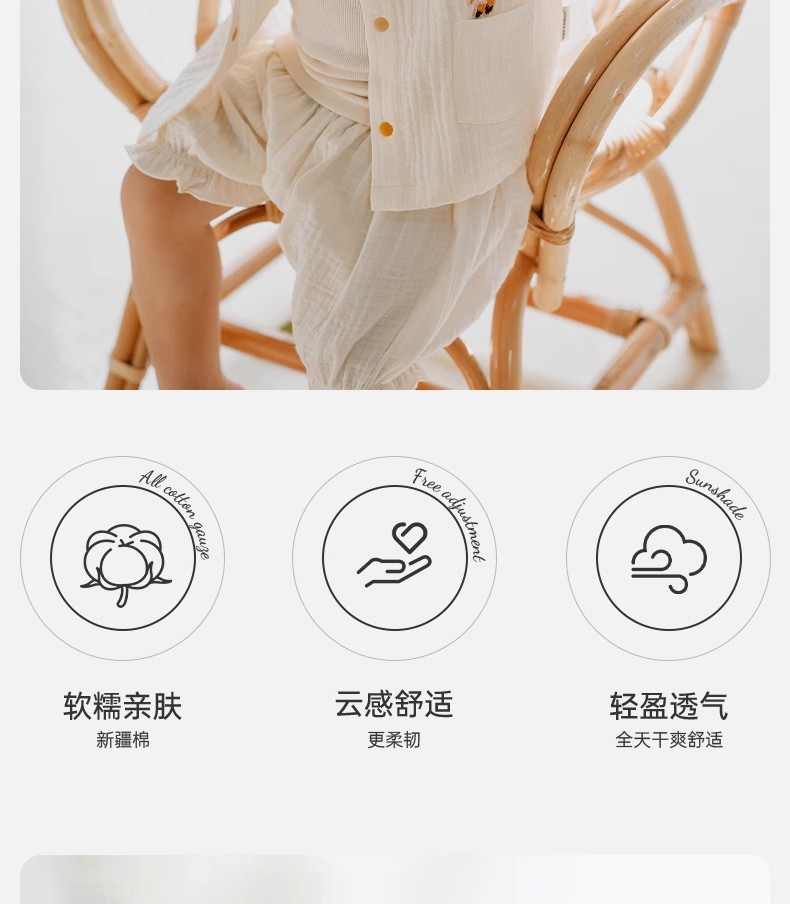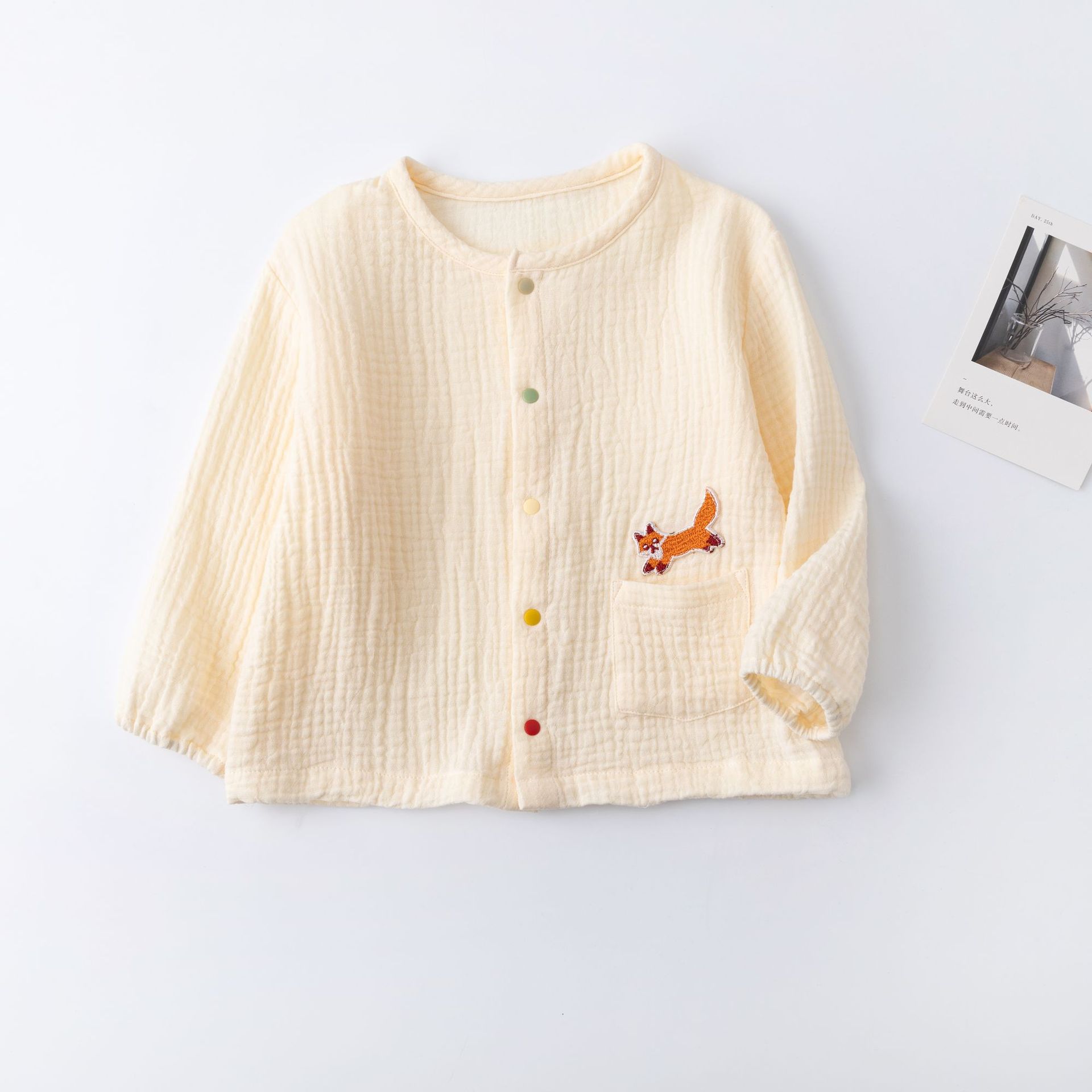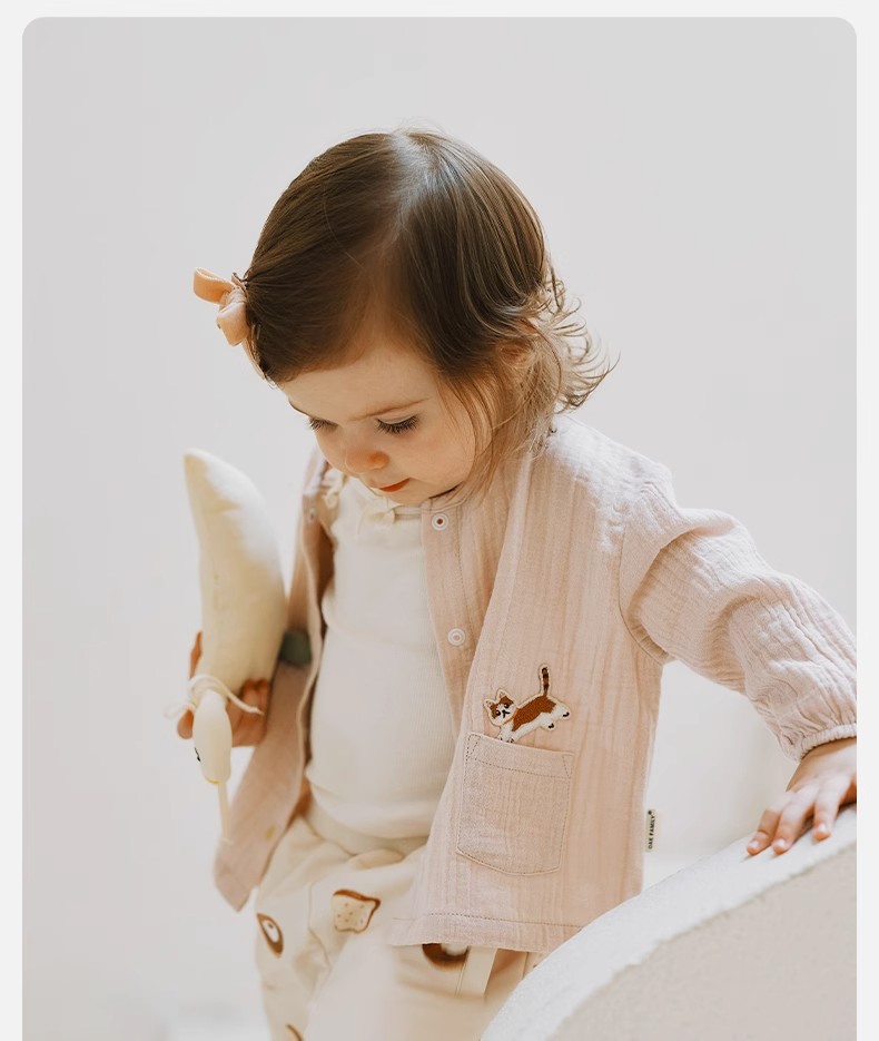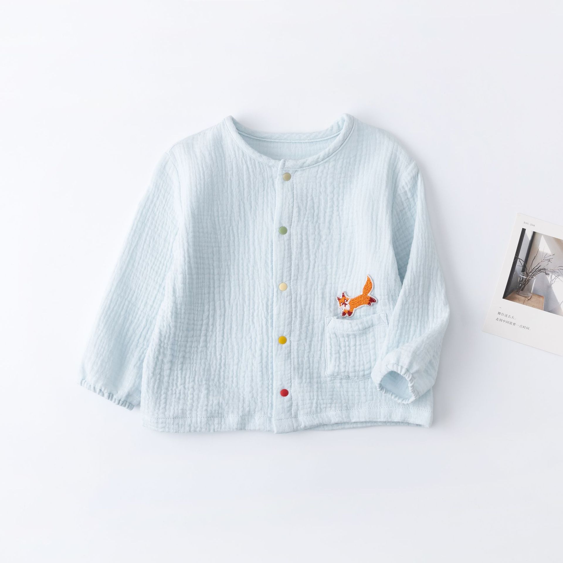 [모란디] 봄과 가을 아기 긴 소매 얇은 코트 코튼 크레페 경량 통기성 아기 에어컨 카디건