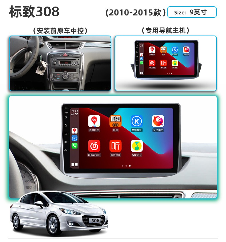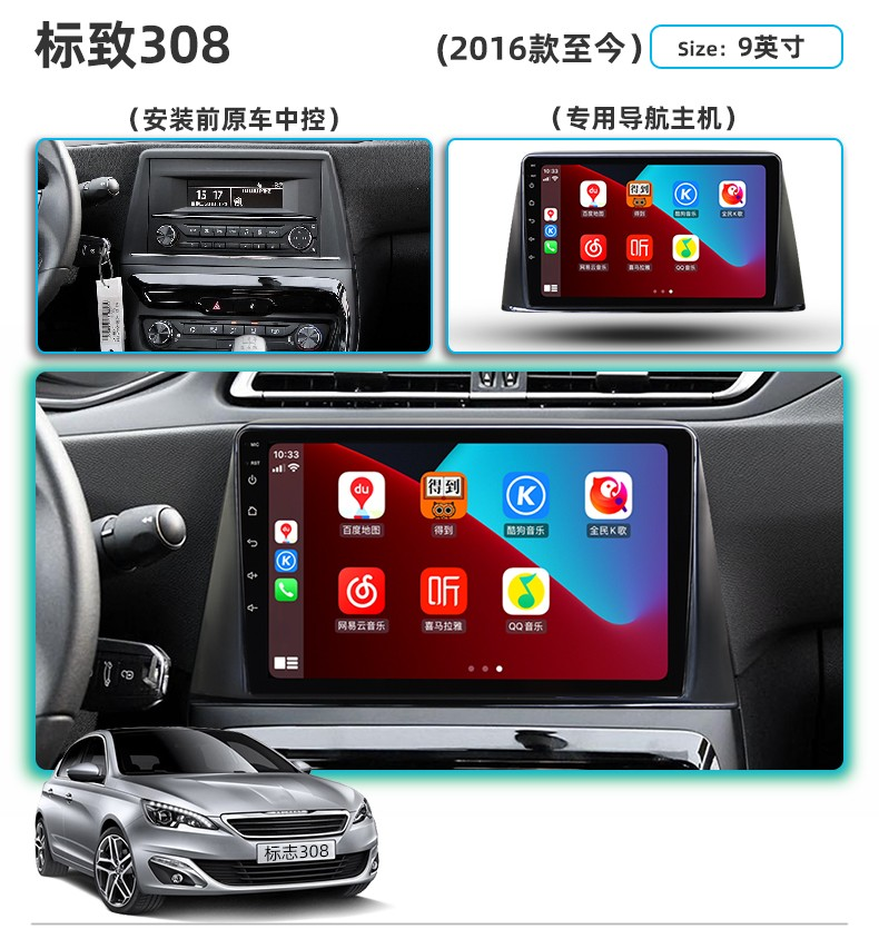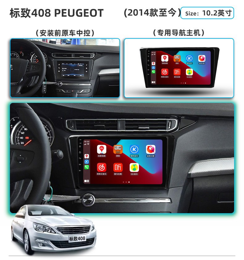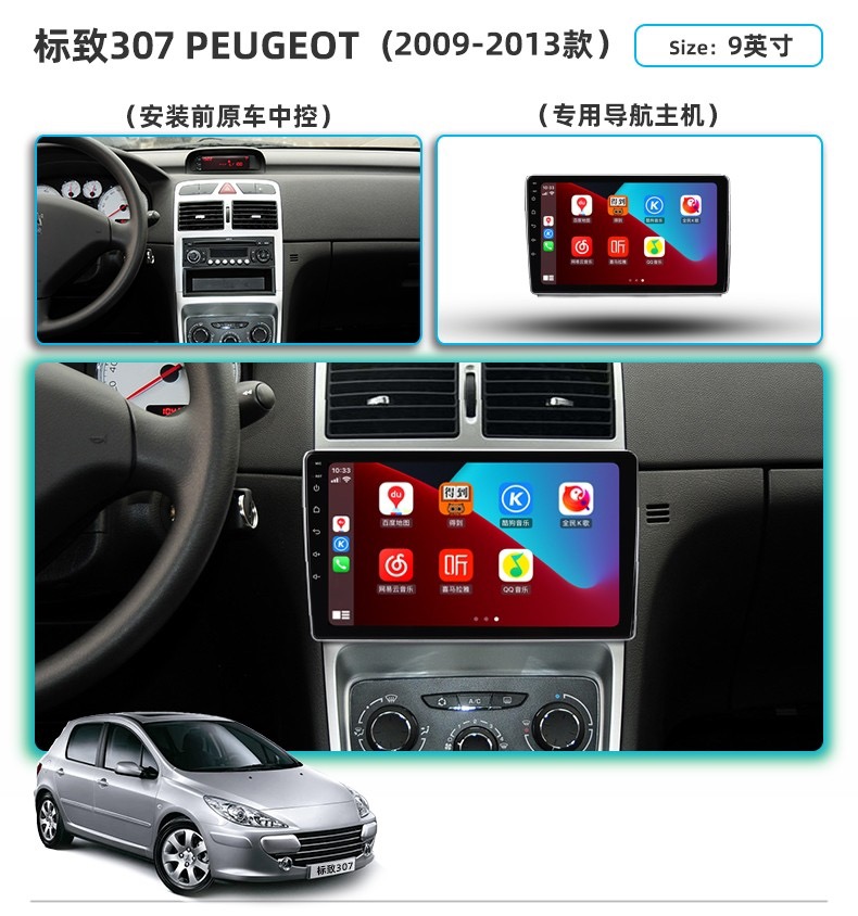 Dongfeng Peugeot 308/408 Elysee 중앙 제어 대형 화면 307/301 반전 이미지 탐색 통합 기계에 적합스토어 가기