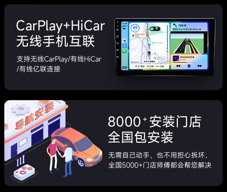 • 8코어: 4G+WiFi【4+64G】QLED 화면+Carplay+Hicar+DSP